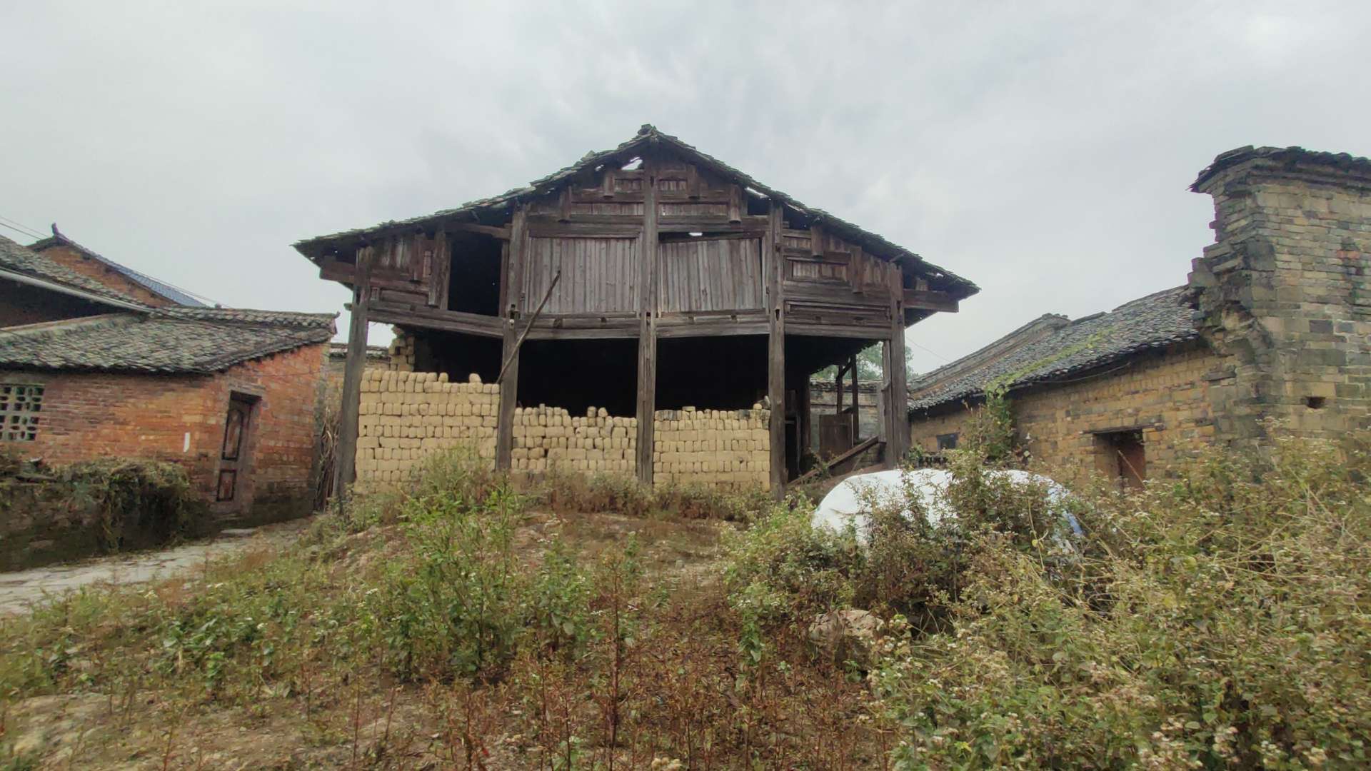 当岁月的风霜,在这历史尘埃中落定,即使经过了翻新,有些东西依然存在,木制的房架,常年堆拾的柴火,大块的黄泥砖,无处不在的述说着崇山村的历史。