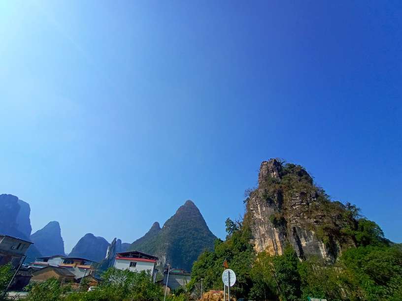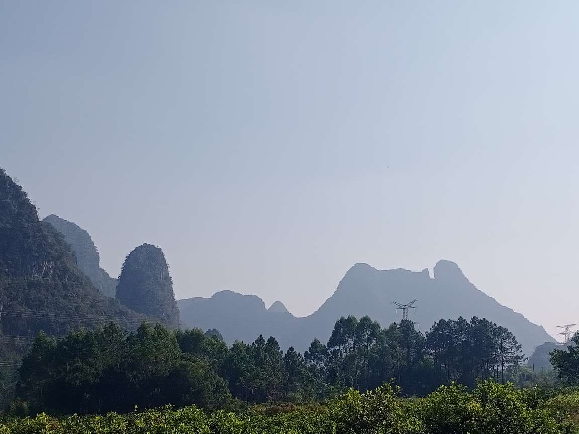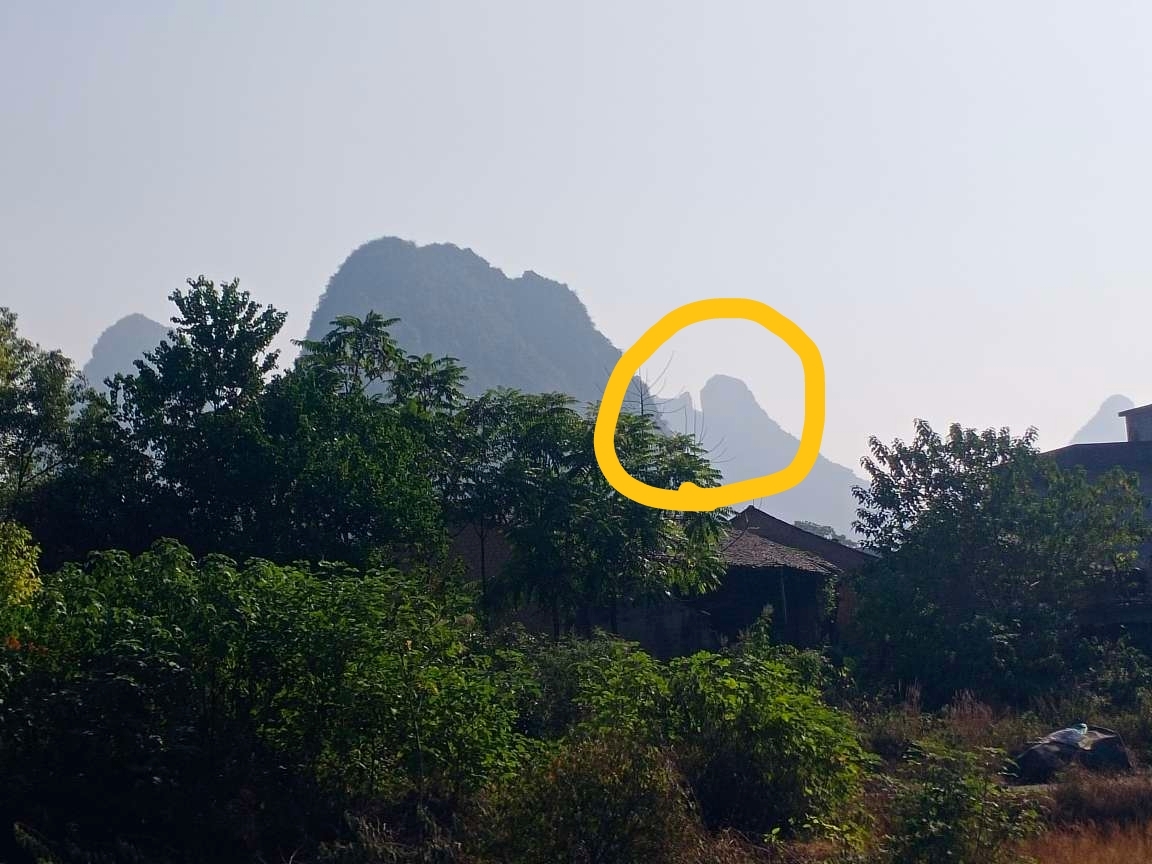 从林湾村新修道路,直行3公里就可以远远的看到群峰环绕的山谷之间,有一座具有苗条身材的山,竖立在群山之中,鹤立独显,宛如桂林市中心的桂林独秀峰,群山之中独在桂林市区显耀。