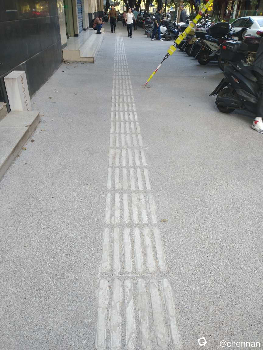 这段时间总觉得粉尘很大,空气质量有点差,原来是很多地方在大规模的翻修人行道,原来的青石板路面彻底铲掉,铺上了一层灰色的小石米路面,看上去有点怪怪的,让人一下适应不了。当然这种路面防滑,透水性好,但会不会产生粉尘,不易清扫呢?