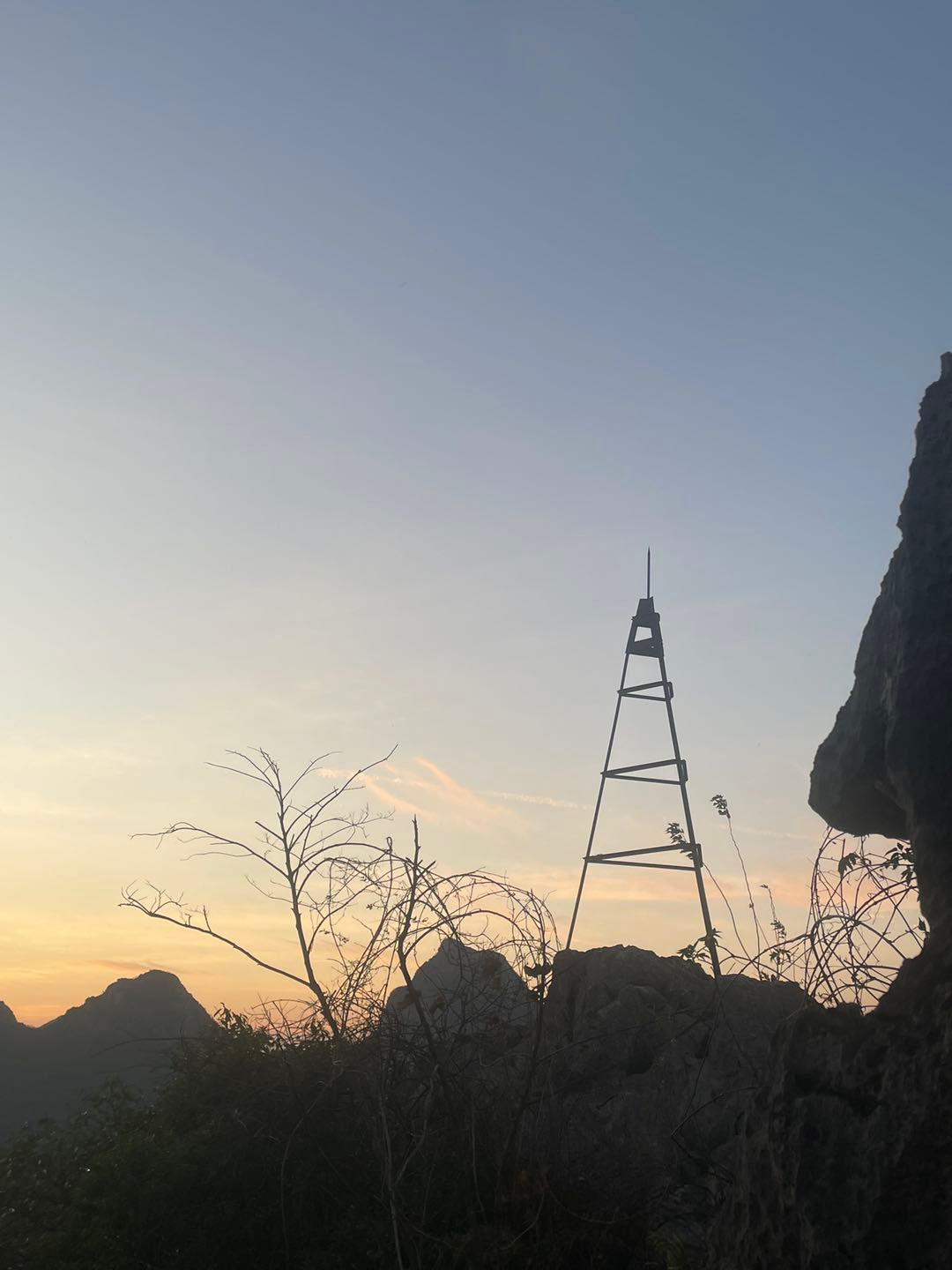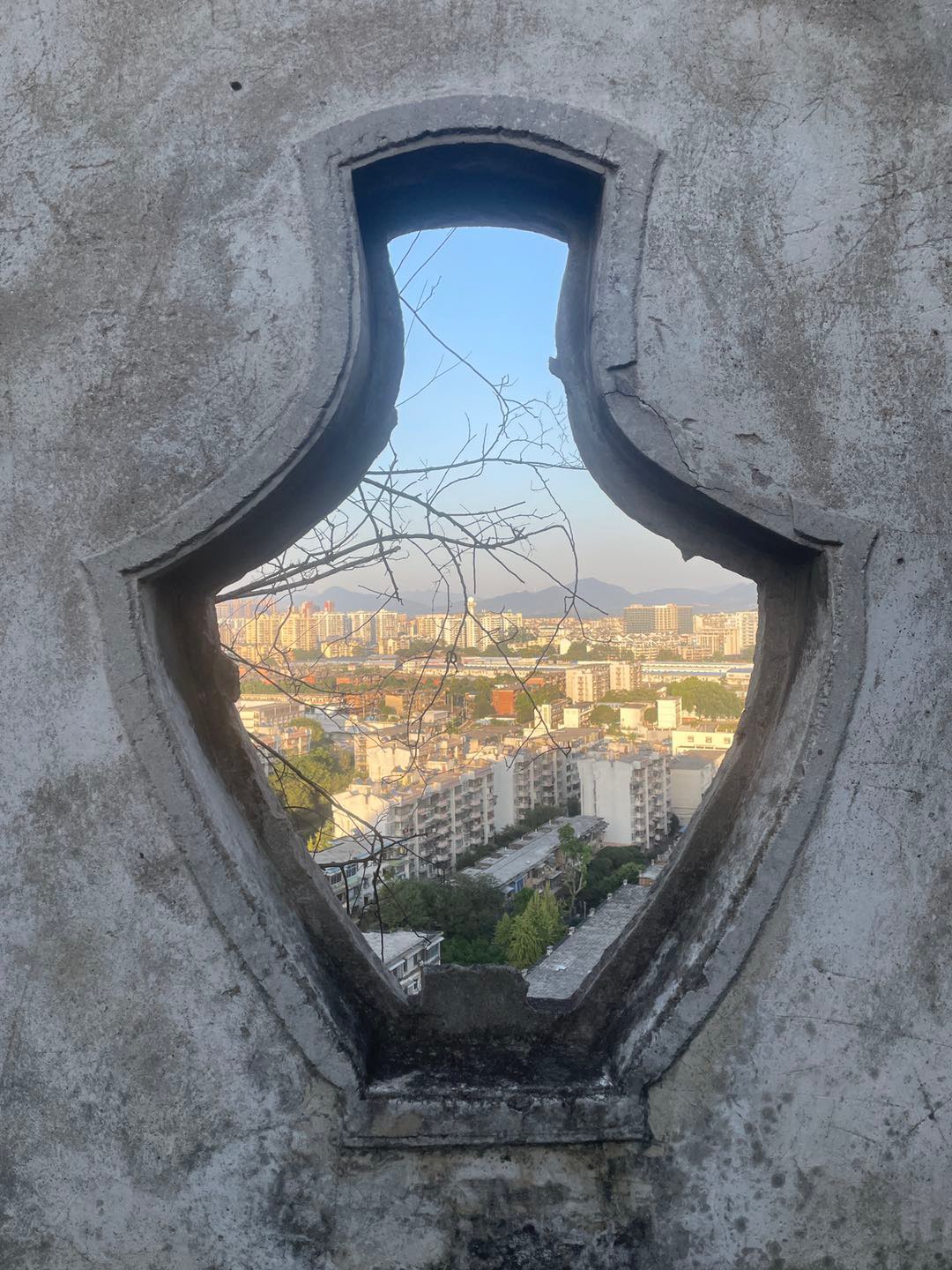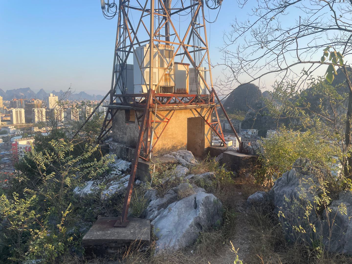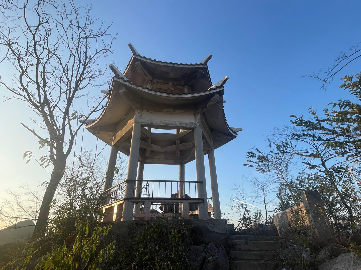 即将登上山顶,最先映入眼帘的就是这高高耸立的信号塔,山顶还建了一个影壁,保存依旧完好,并且开了三个窗口供人看外面的风景,这个设计也算非常巧妙,既起到了保护的作用,也为山上加入了中式元素,并且不耽误人们看风景。