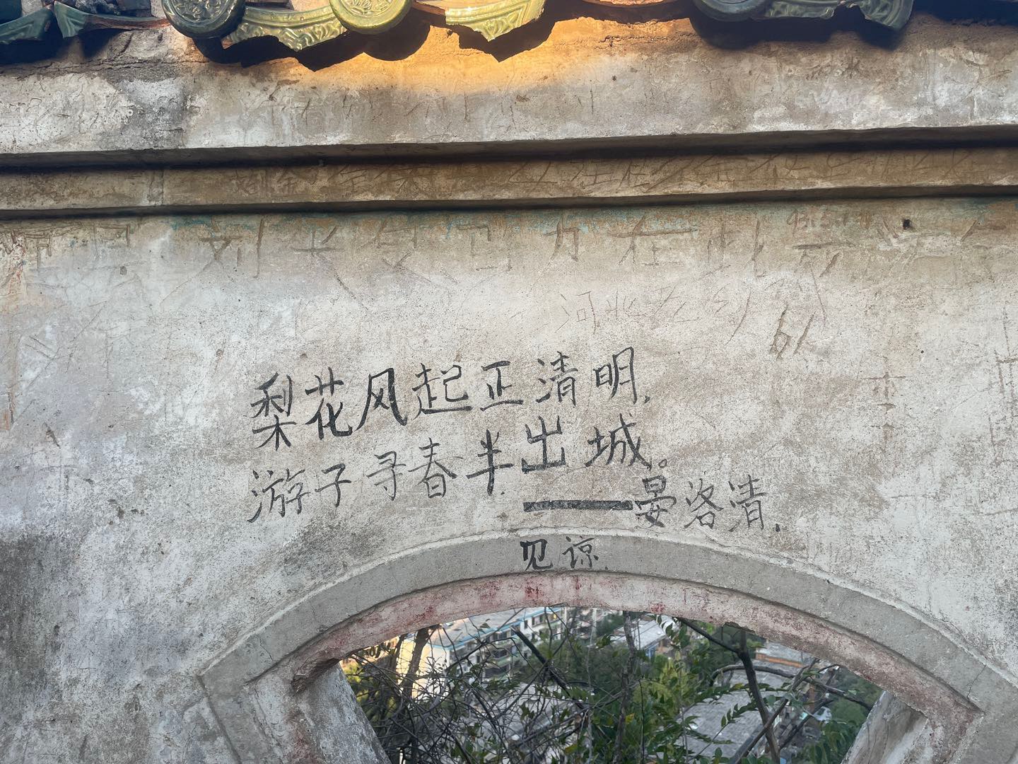 人们在影壁上留下的诗句,字虽然不好看,但文采还是不错的。
