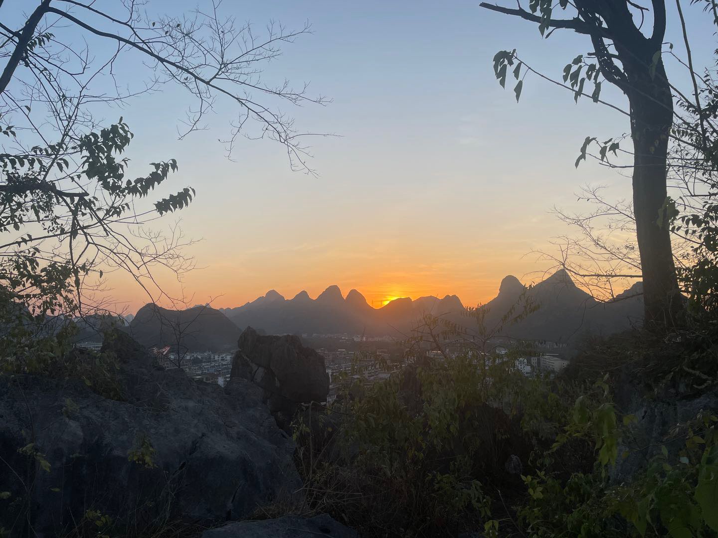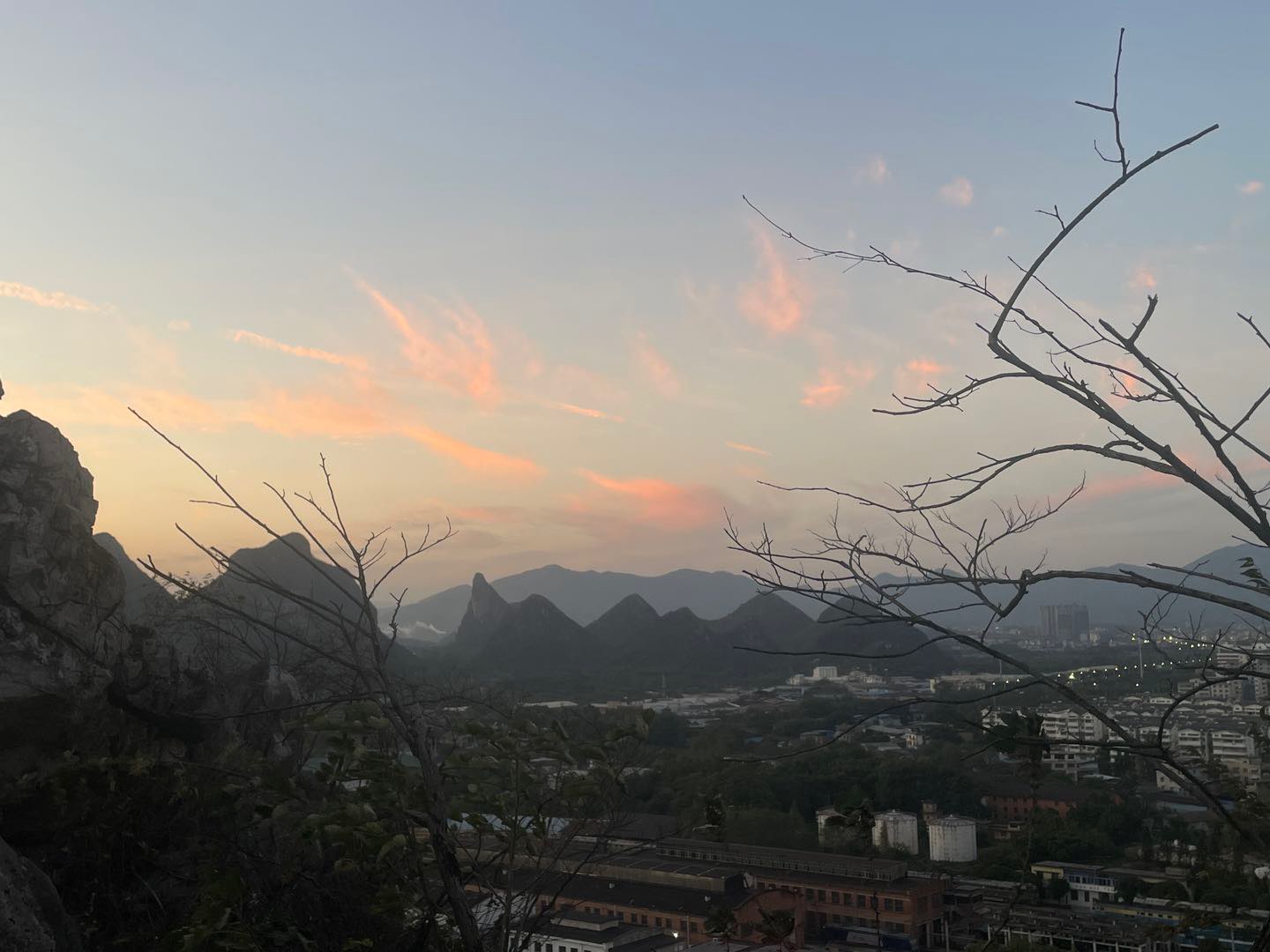 没过多久就等到了晚霞,说实话这里的不是晚霞的最佳拍摄点,树枝过多容易阻挡拍摄,山顶避雷针处应该是不错的拍摄点,但石头太多很难攀爬。