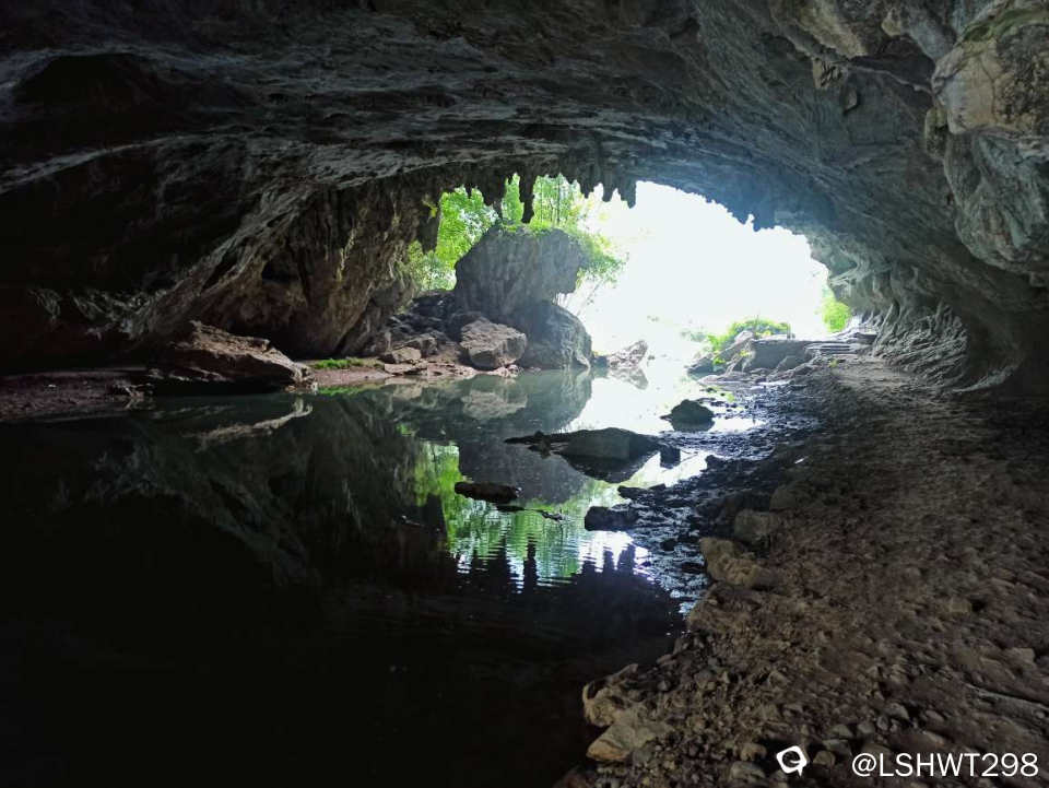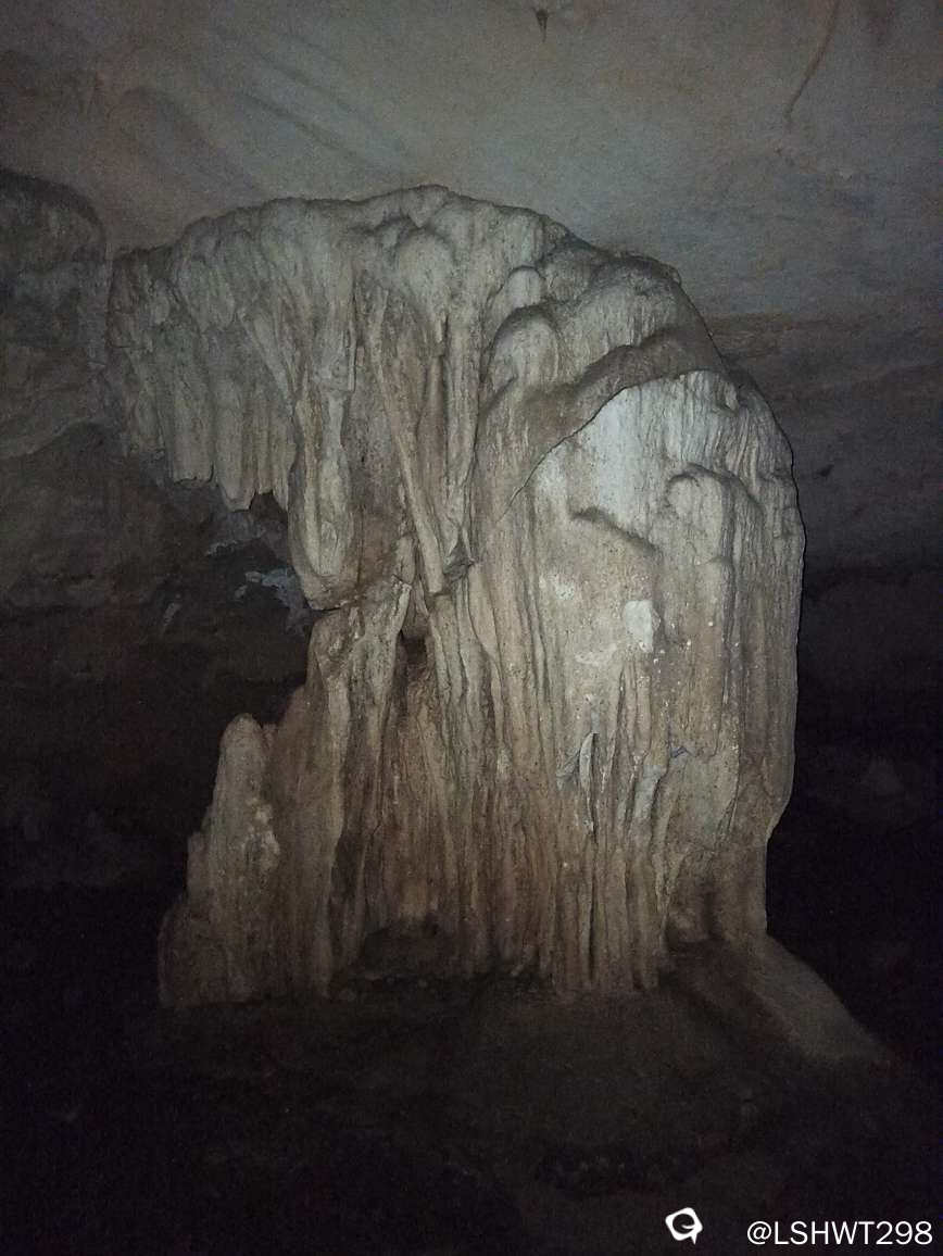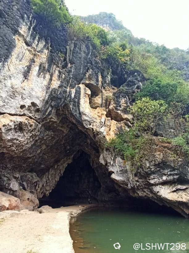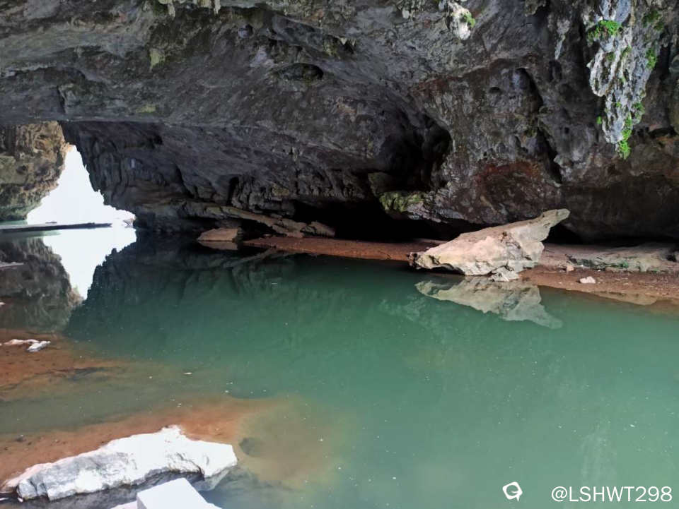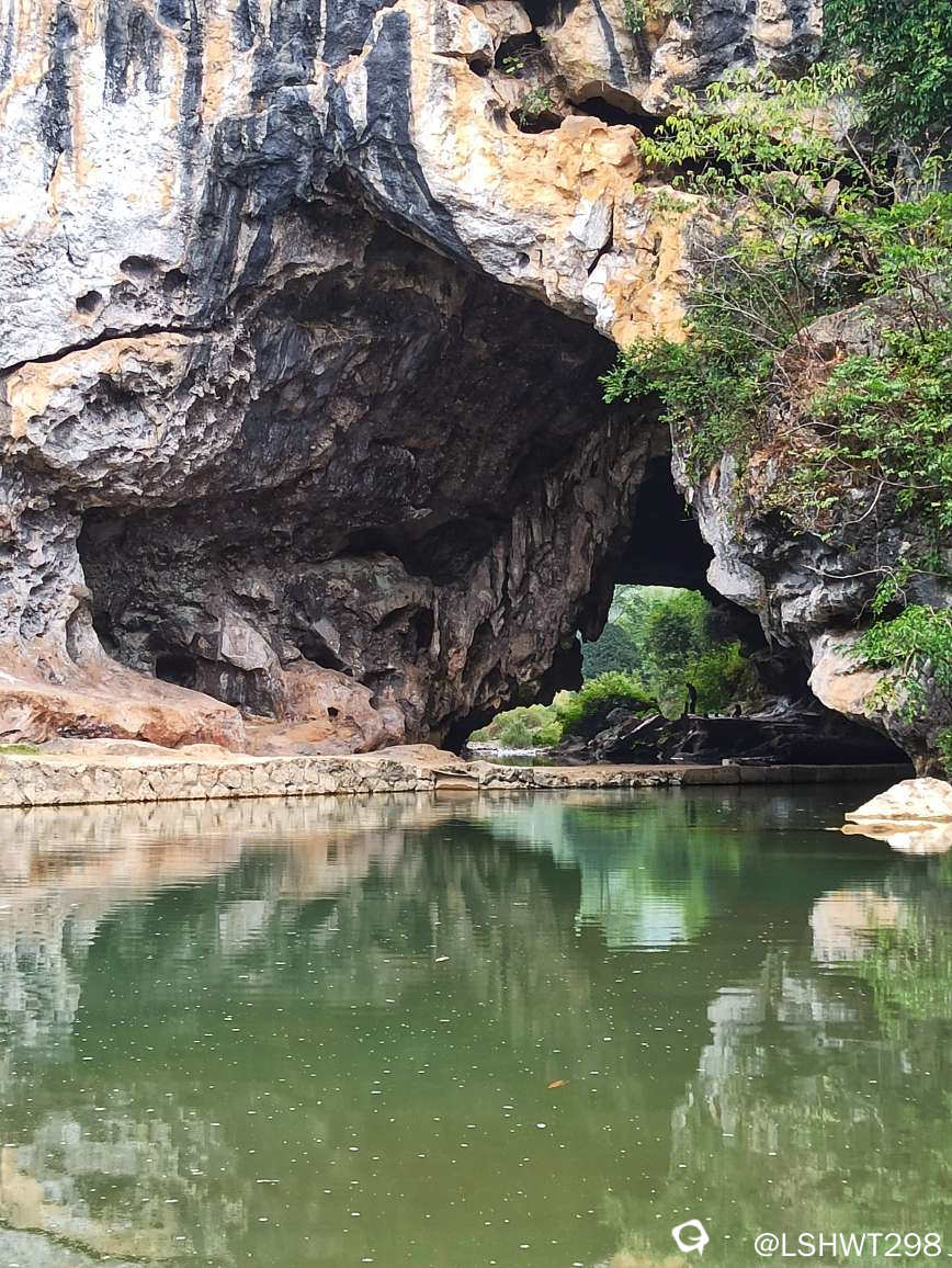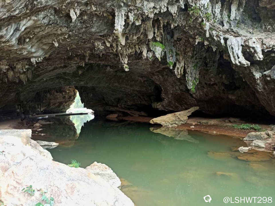 荔浦穿岩。位于双江镇笔村后300米处,这是某资料的描述,实则可直搜穿岩。实地探观,笔村后的道路狭窄,不好错车,当然两轮可以忽略。。。岩内建有水泥硬化小路,上通阳朔高田,下通荔浦双江,为附近村民生活生产出入必经之路,洞中有潭,清风习习,丰水季清彻见底,岩中石乳到挂,各展其姿,与潭池相映,今人神怡。。。