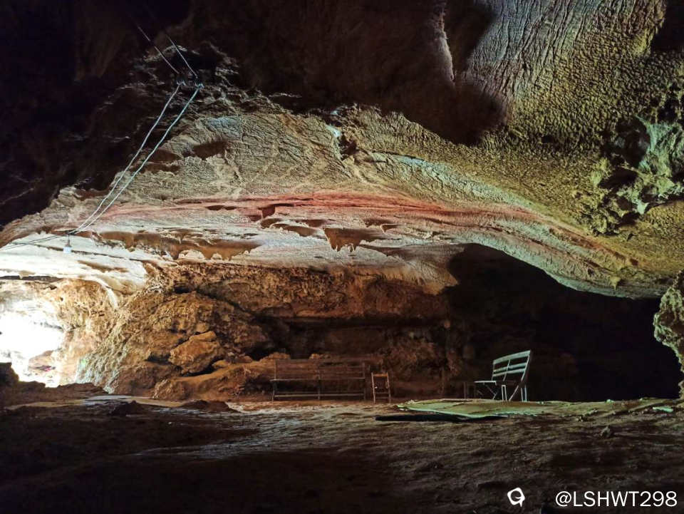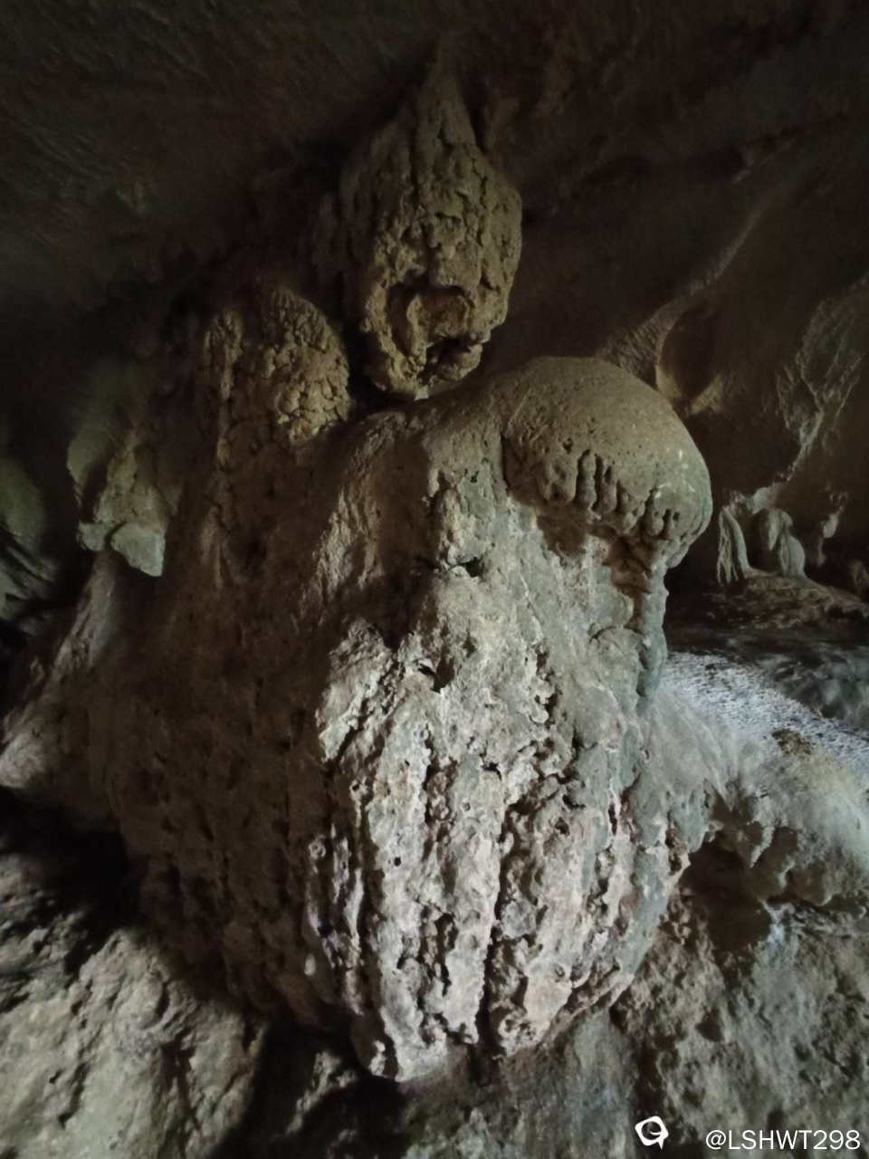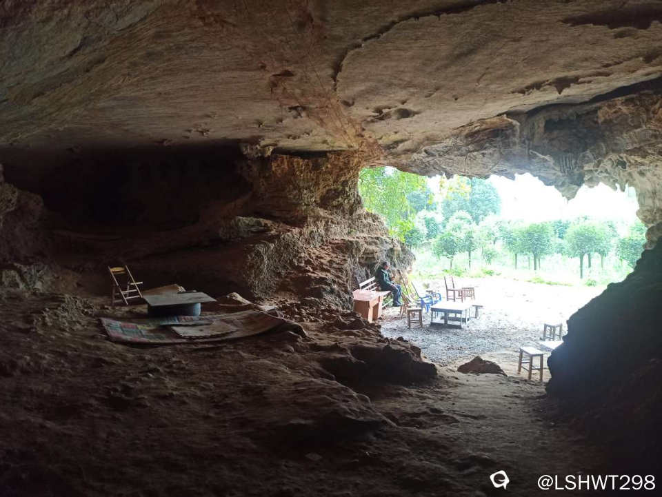 妙花石岩(自定义,红圈。地图上没标注,手机进洞后定位也不显示)。位于荔浦妙花屯与苏村之间的乡道上,石岩有2处洞口,互不相通。洞内钟乳耸立,玉笋奇石,参差峥嵘。周边配套简易卫生公厕。显然,此地已成为附近村民休闲纳凉之地。。。