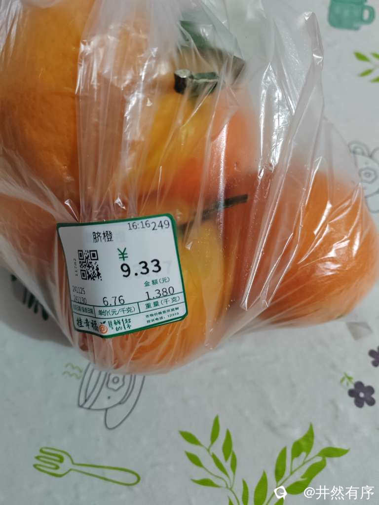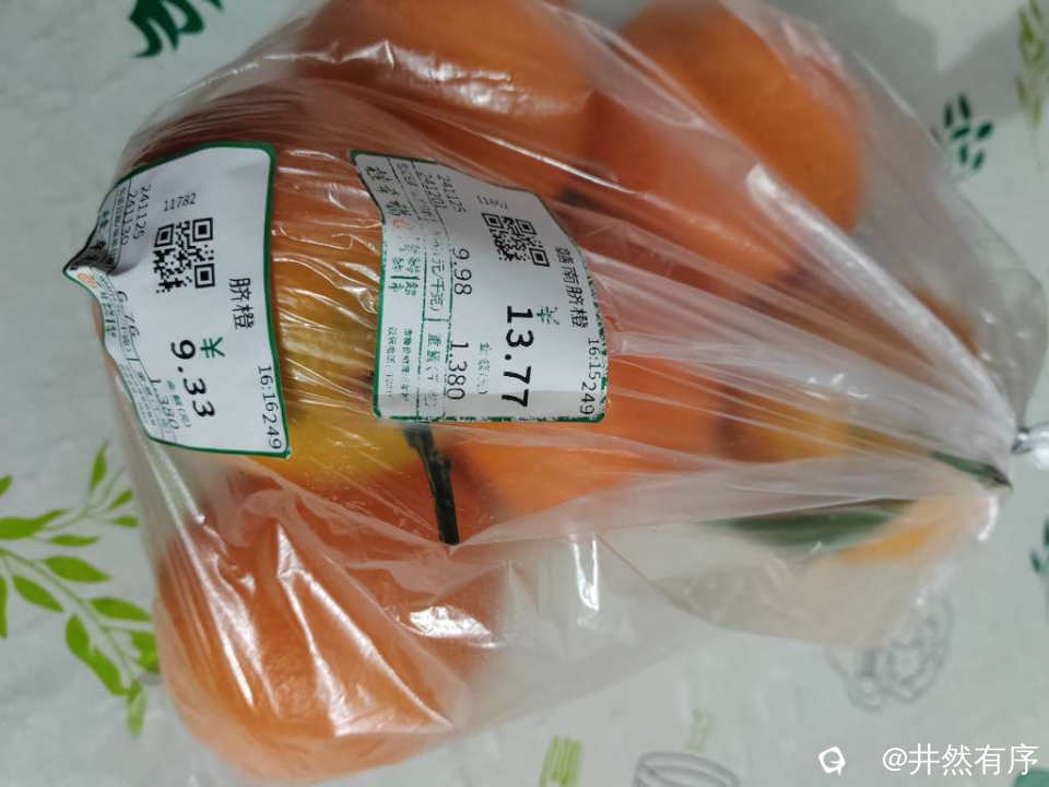 同样的橙子,开始搞错了,纠正后把价格贴在原来的上面,我回家撕下来的。