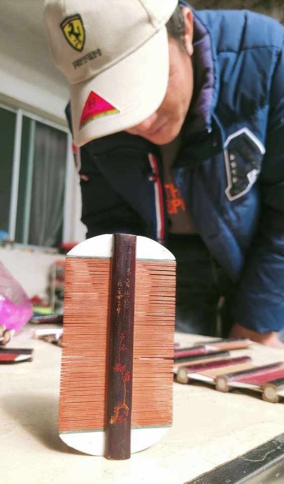 梳篦,这个看似简单的物品,却蕴含着深厚的文化底蕴和精良的工艺技术。据悉,梳篦工序有煮胚、晒梁、烘胚、敲胚、漆梁、平底、创槽、嵌篦钻头、整篦、开齿、刷篦等多道工序,制作后在篦梁上雕刻山水花鸟虫兽等题材,通过他们的双手,让每一把梳篦都被赋予了新的生命。它们不再是简单的木材,而是变成了能够梳理人们思绪,美化生活的工具。