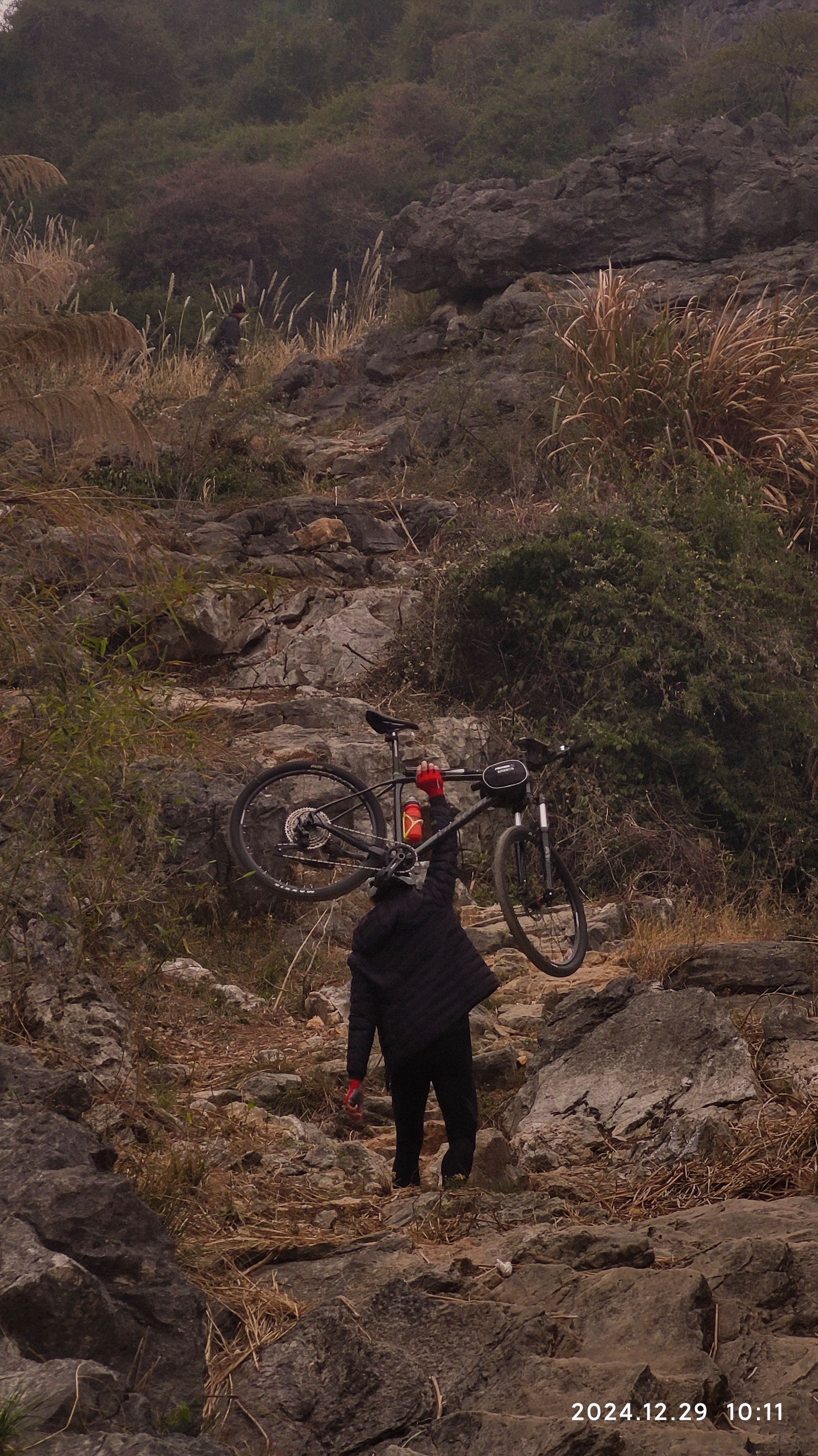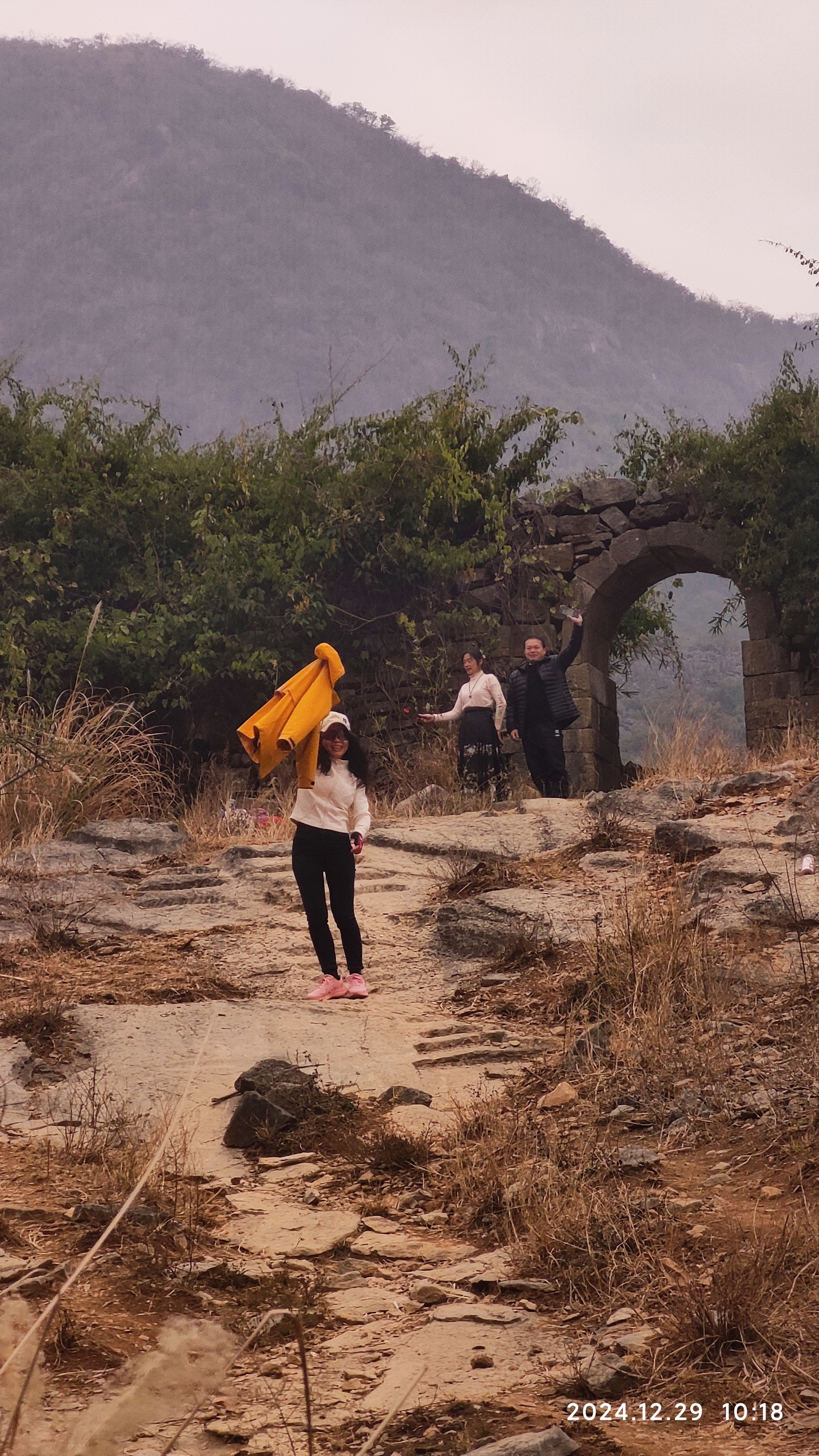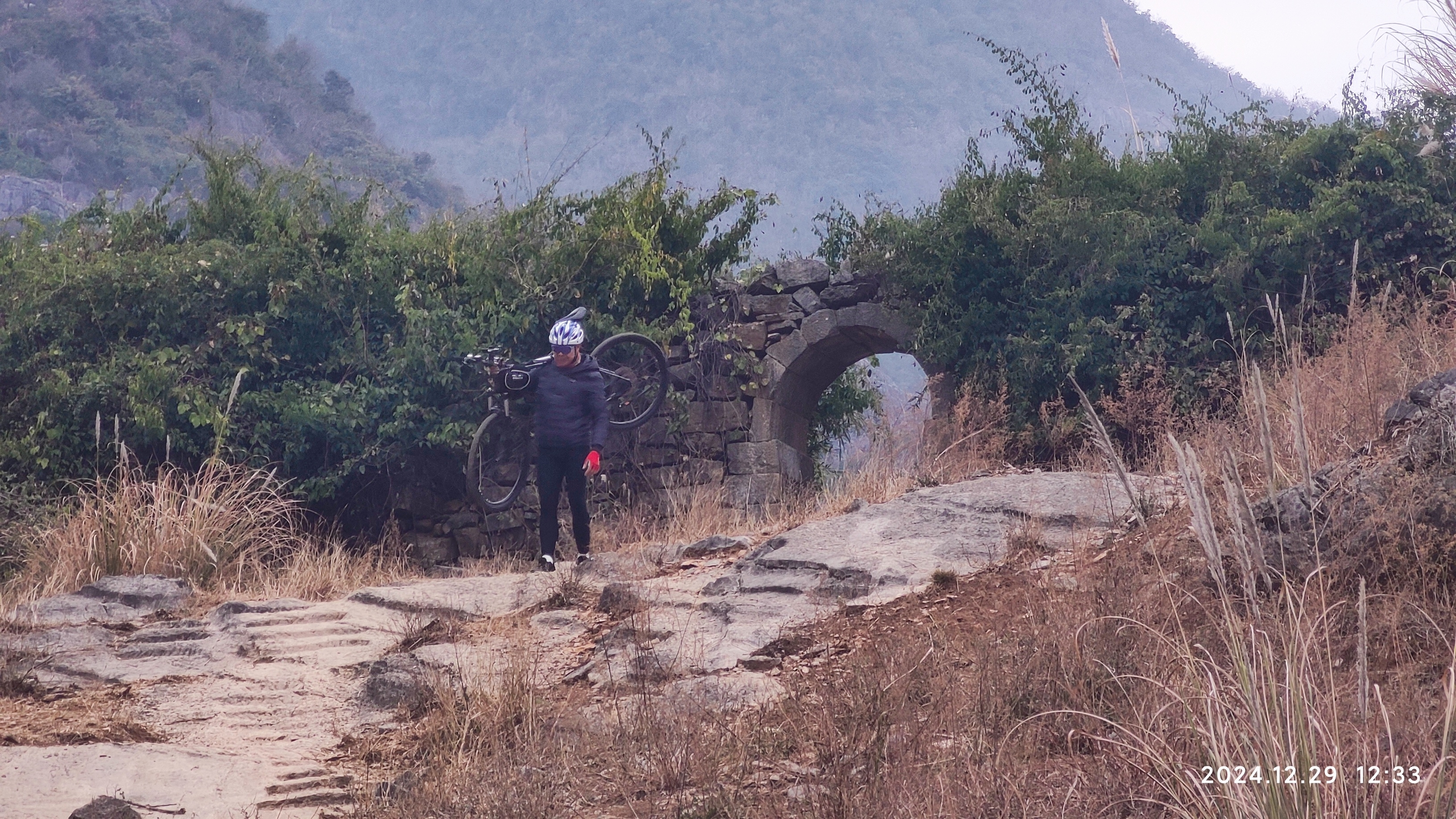 整个山路不陡,山路较宽,视野开阔,很适合徒步游玩。你看看这位大神,把爱车都扛上山,十多分钟就到达第一道山门。