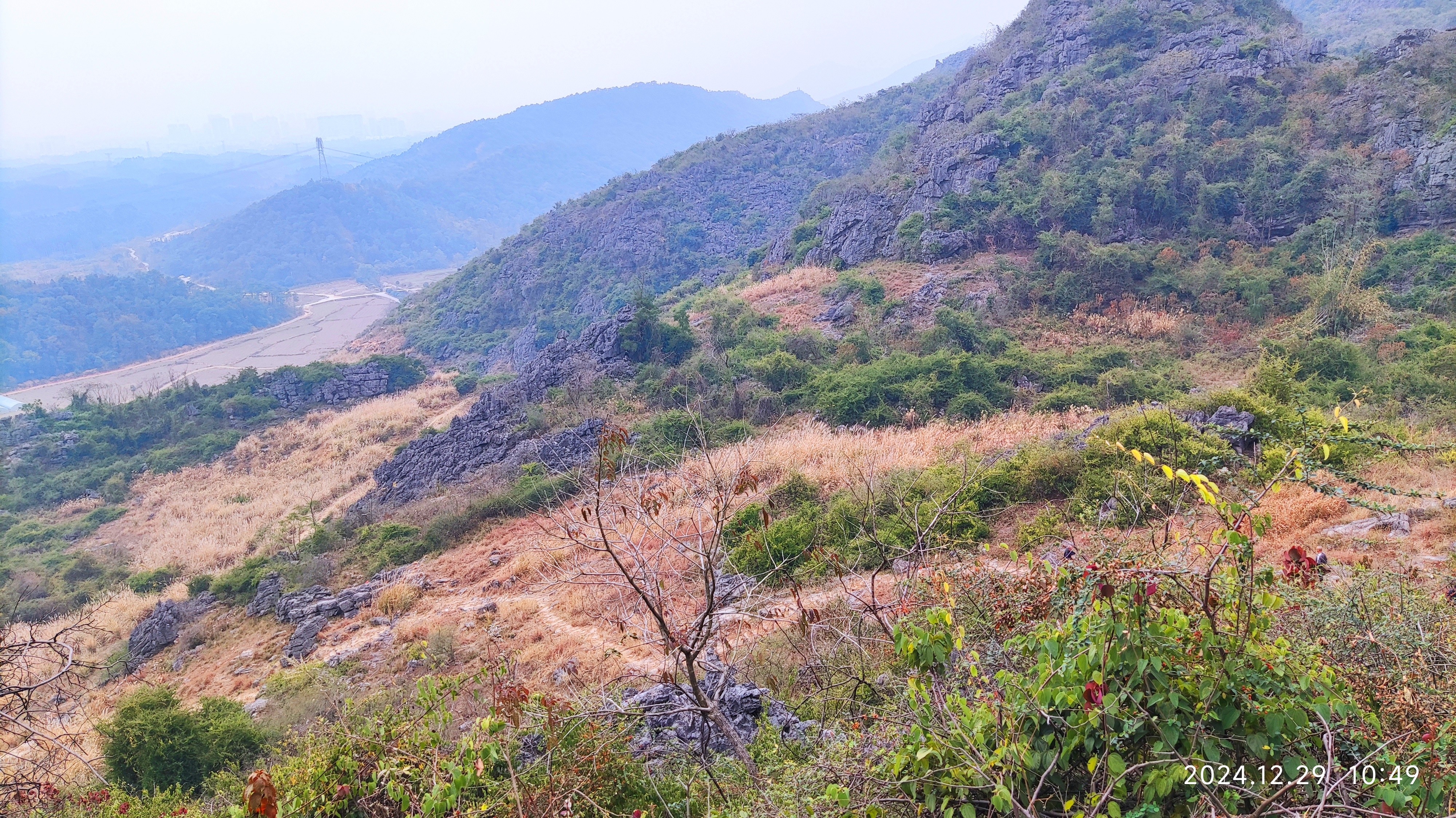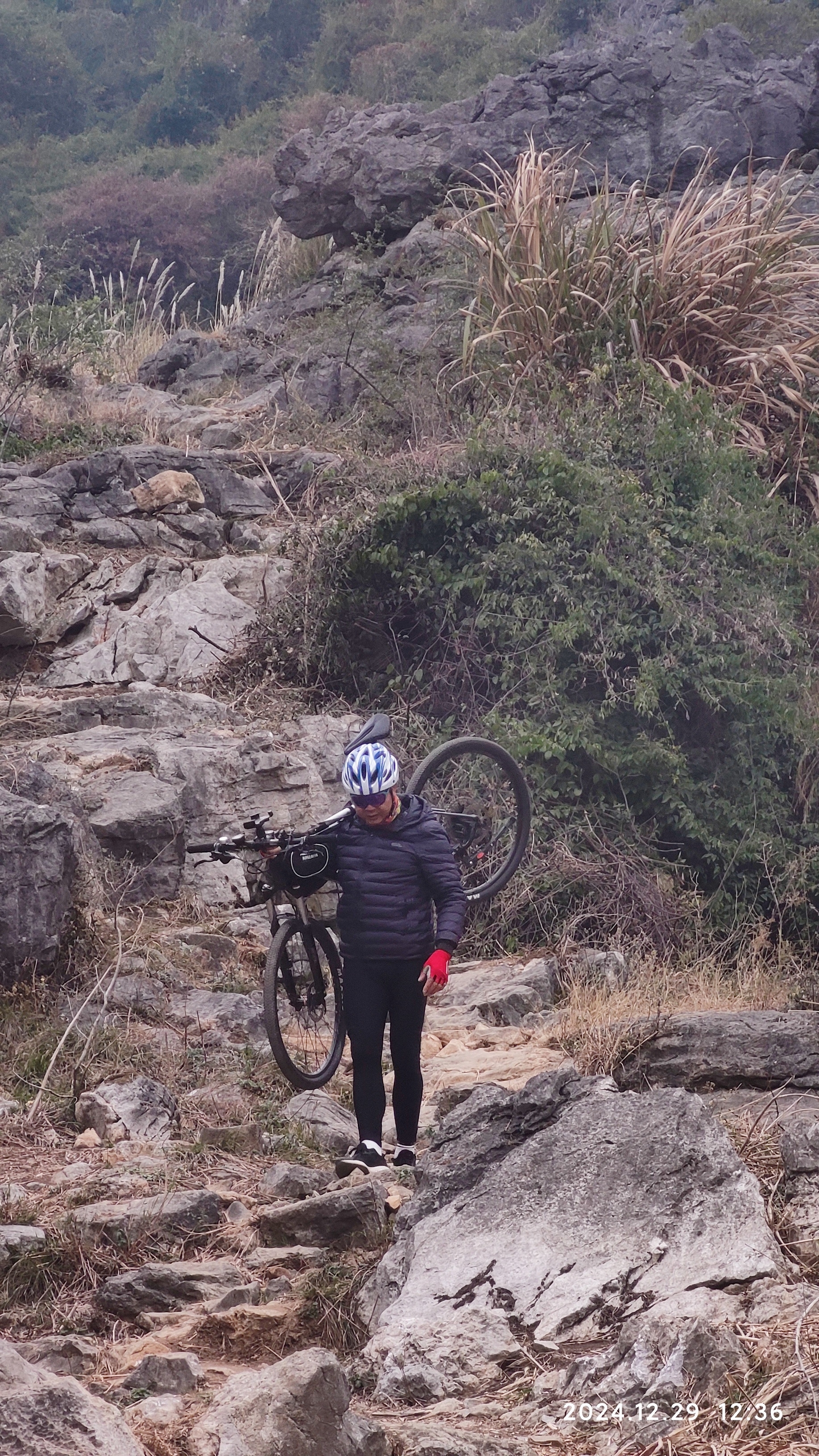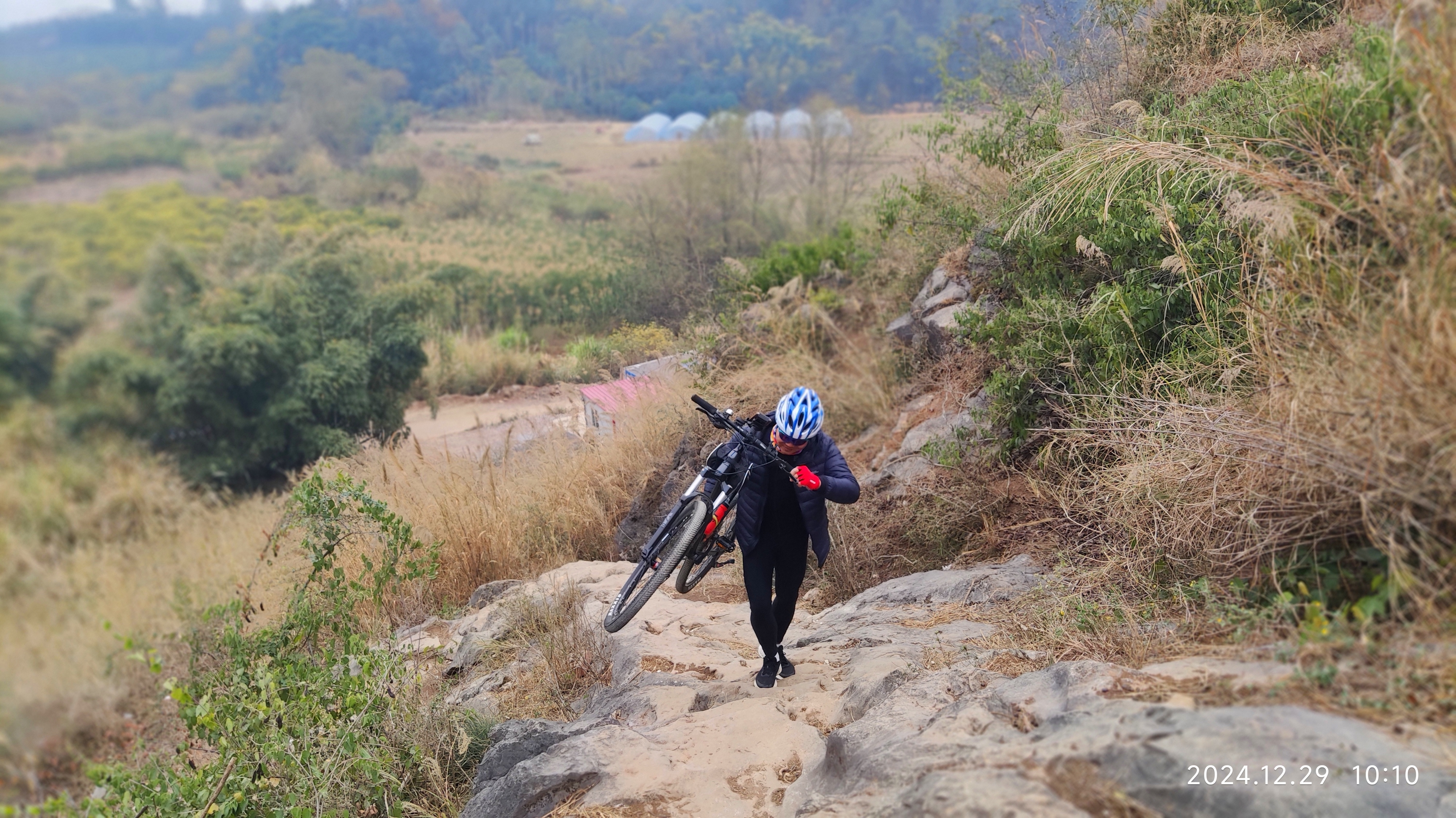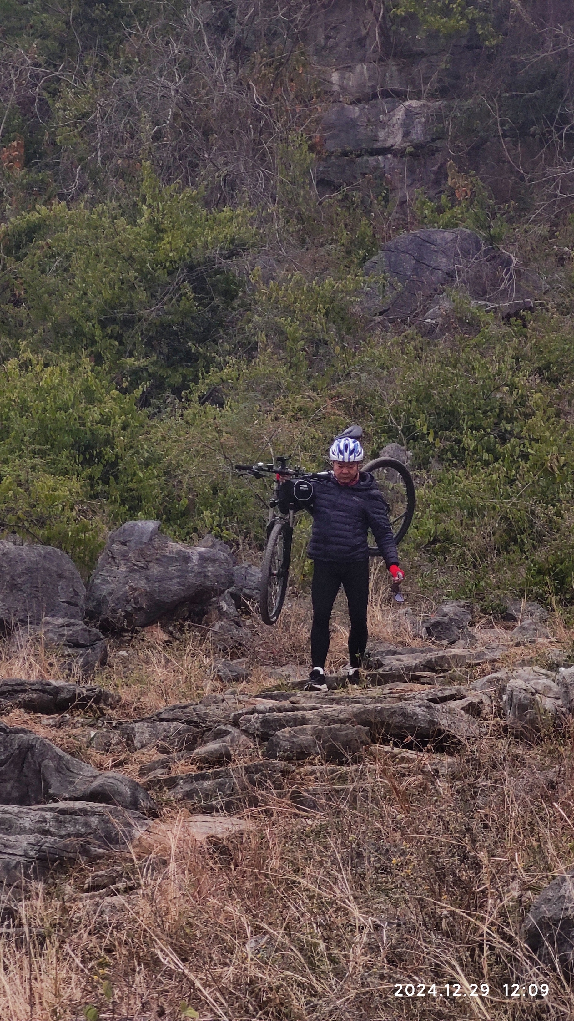 整个山路不陡,山路较宽,视野开阔,很适合徒步游玩。你看看这位大神,把爱车都扛上山,十多分钟就到达第一道山门。