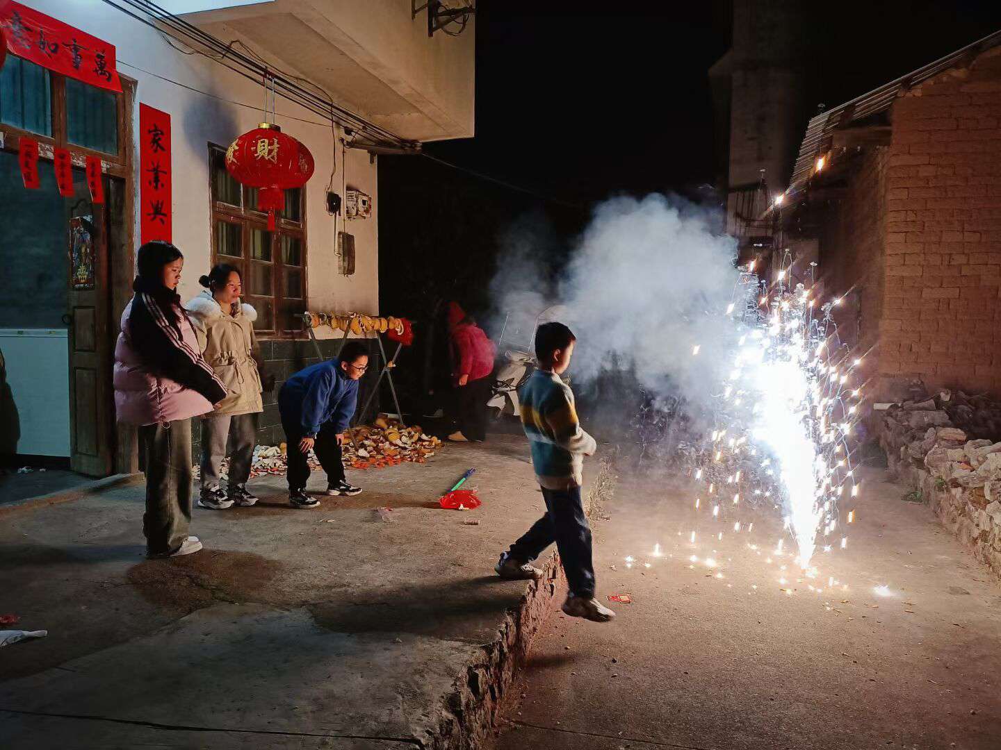 晚饭后,在家门口的空地上,儿子和小伙伴一起放鞭炮,放烟花。随着一声声鞭炮的炸响,看着烟花绽放,在那一刻所有的烦恼和忧愁都被抛到了九霄云外,只剩下无尽的欢乐和幸福。