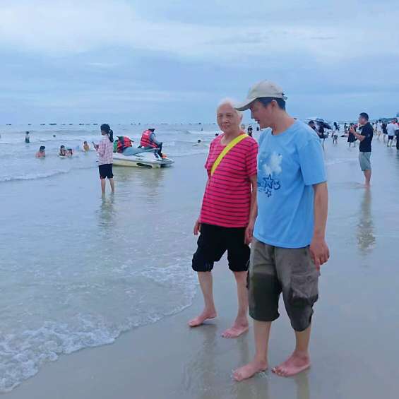 “很美,这是我第一次看到大海。”妈妈微笑地说。