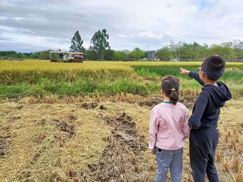 “谁知盘中餐,粒粒皆辛苦。”孩子们站在这片金黄的稻田前,观看着农民忙碌地收割稻穗。在这里,孩子们感受到劳动的艰辛和不易,从播种到收获每一粒粮食都承载着农民的辛勤和汗水。他们明白了要珍惜每一餐,不浪费任何粮食的古训,这一情景已经深深烙印在了孩子们的心中。