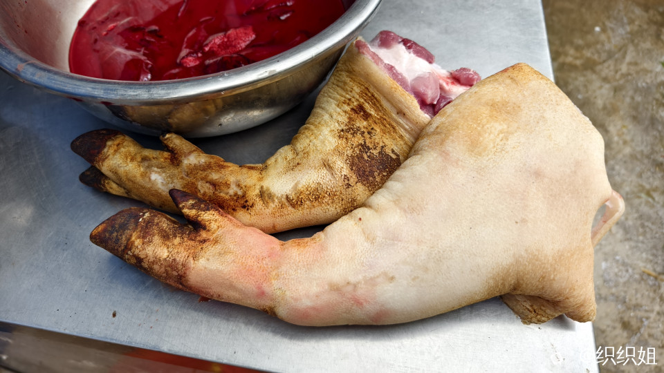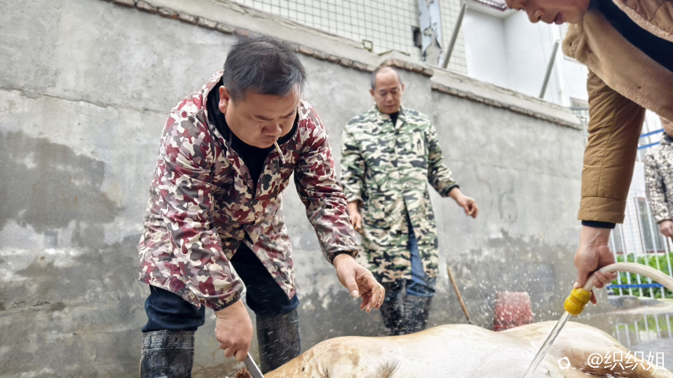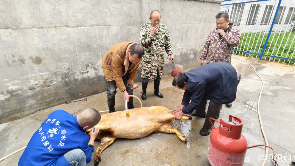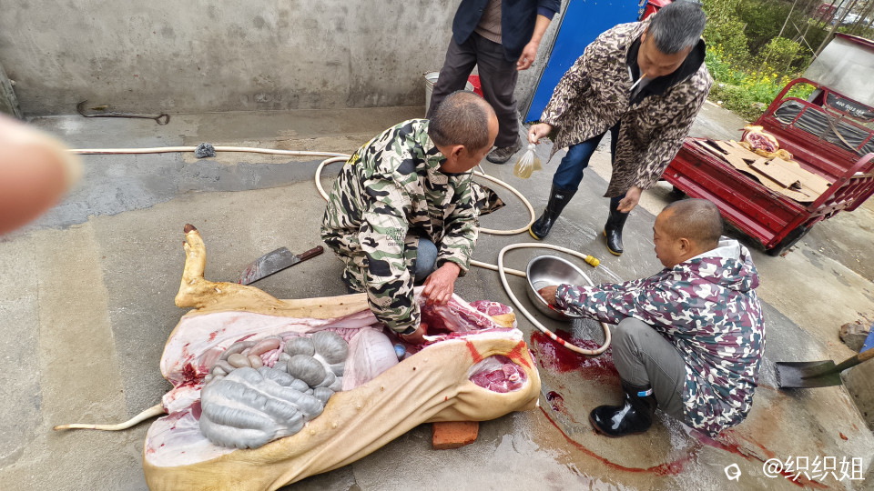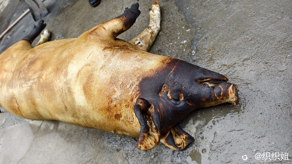 良辰吉时到,实干组说干就干,总指挥阿胖,主刀麻哥,其它精兵强将小勇,小青,权权等按总指挥的指令,有序进行。不一会,二师兄已被摆在案板上。