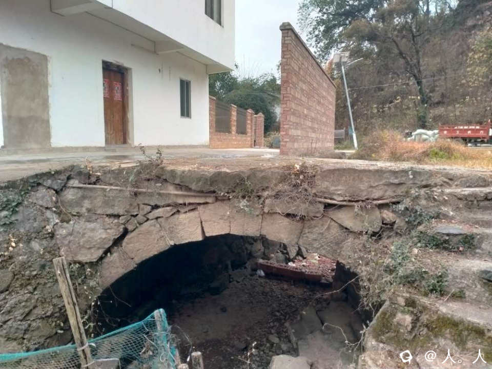大村小卖铺门口,我依稀记得这凯是有个小拱桥的,问老板,他讲20年前是有个拱桥。
