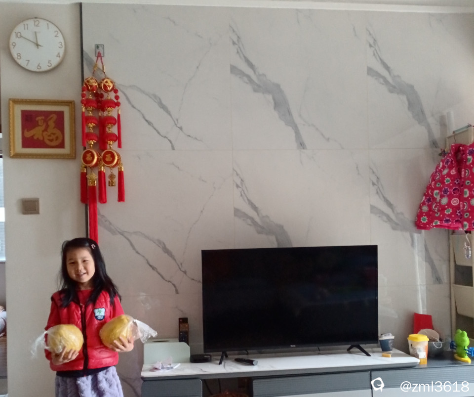 咱带了两个阳朔的柚子到深圳,家里的小朋友抱着柚子给我当模特,我给她发红包,其乐融融。