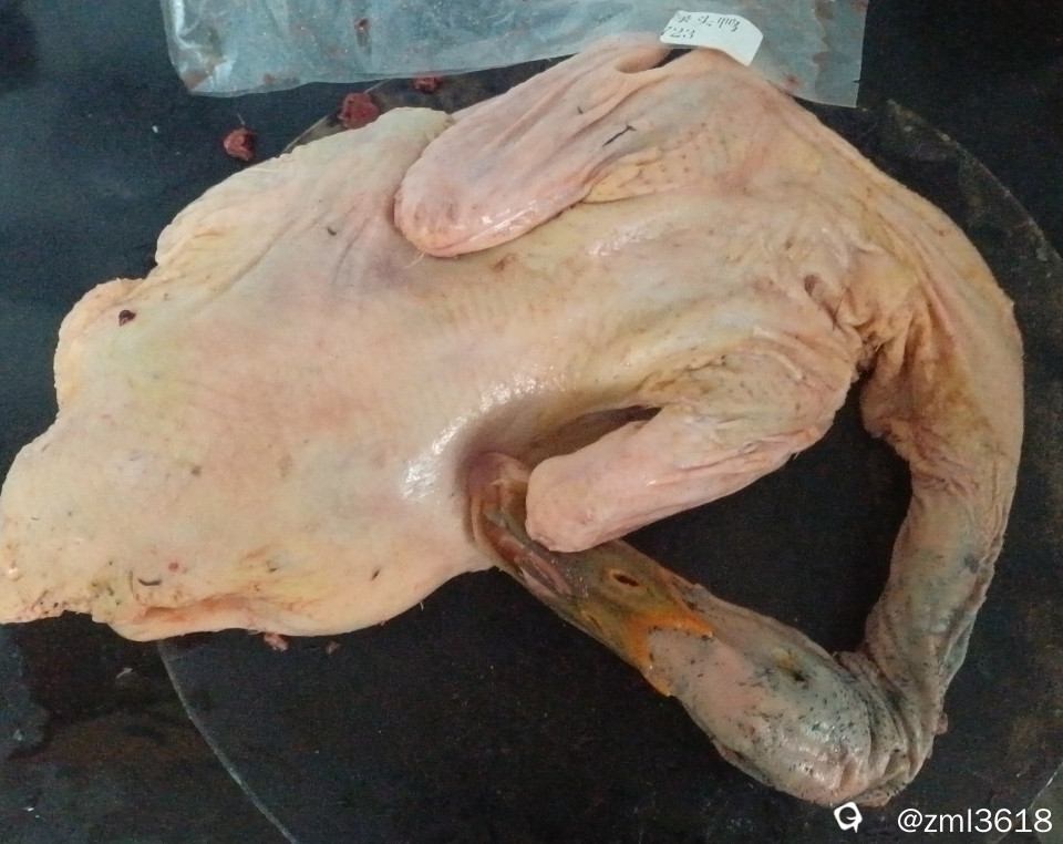 一只某农庄的绿头鸭,足有4斤多重,带了一瓶漓泉啤酒1998原浆,