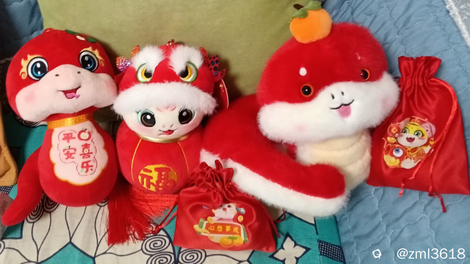 单位发给孩子的,呆萌可爱的卡通蛇挂件;福袋,福袋里有糖果。