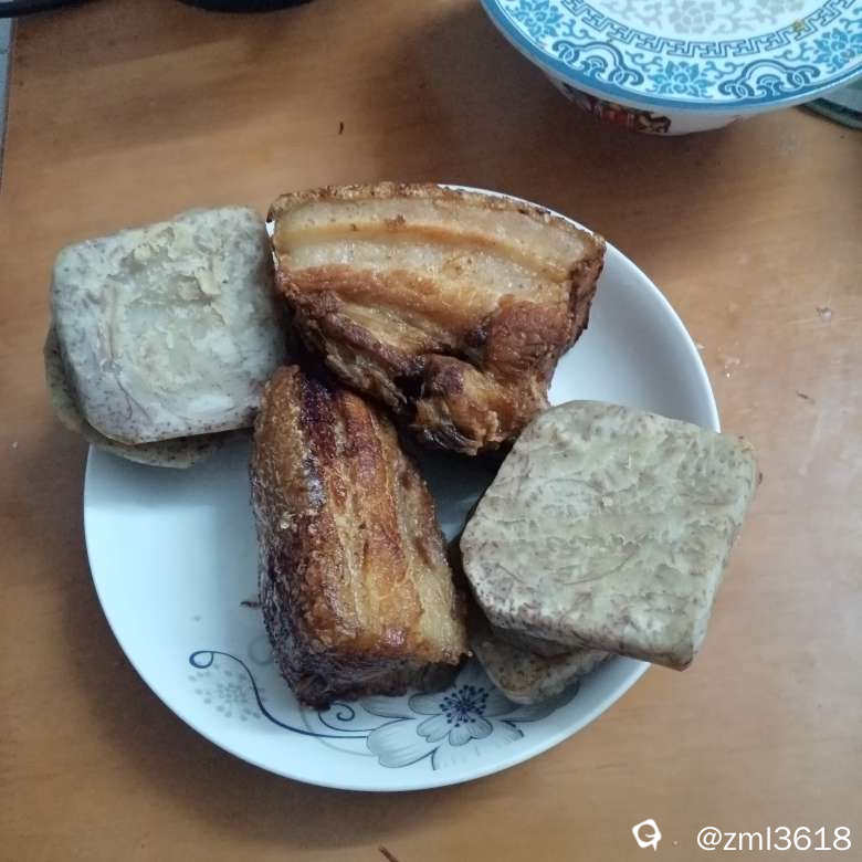 买了一斤多扣肉胚子,炸了些香芋,到深圳做扣肉。