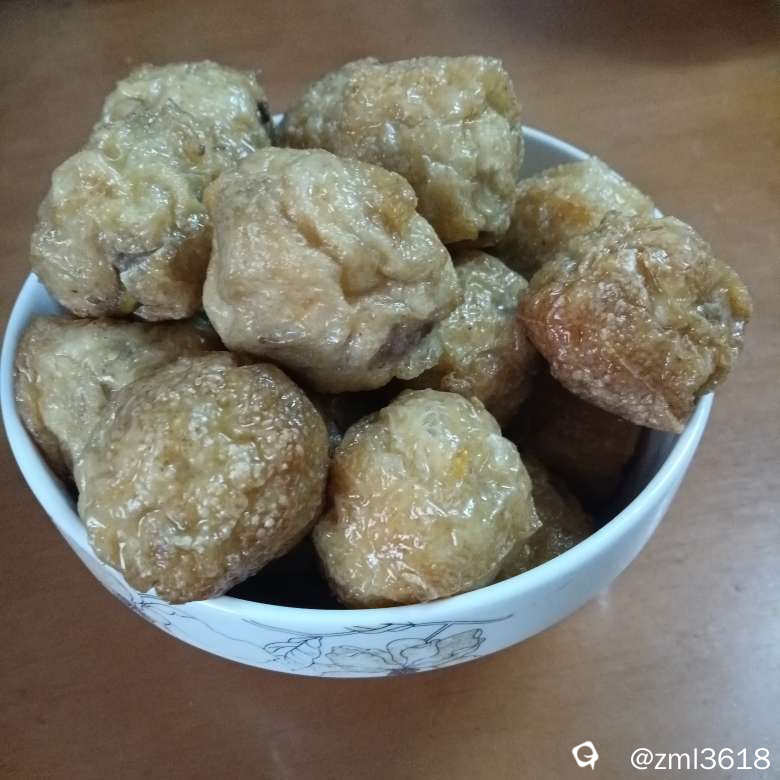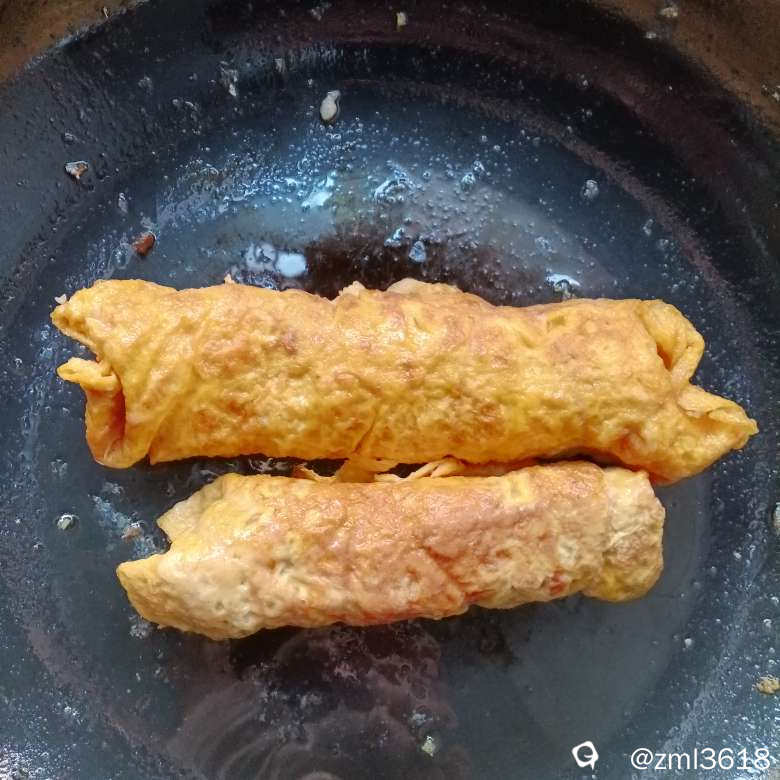 把做圆子剩下的肉馅,卷了两条欢喜。