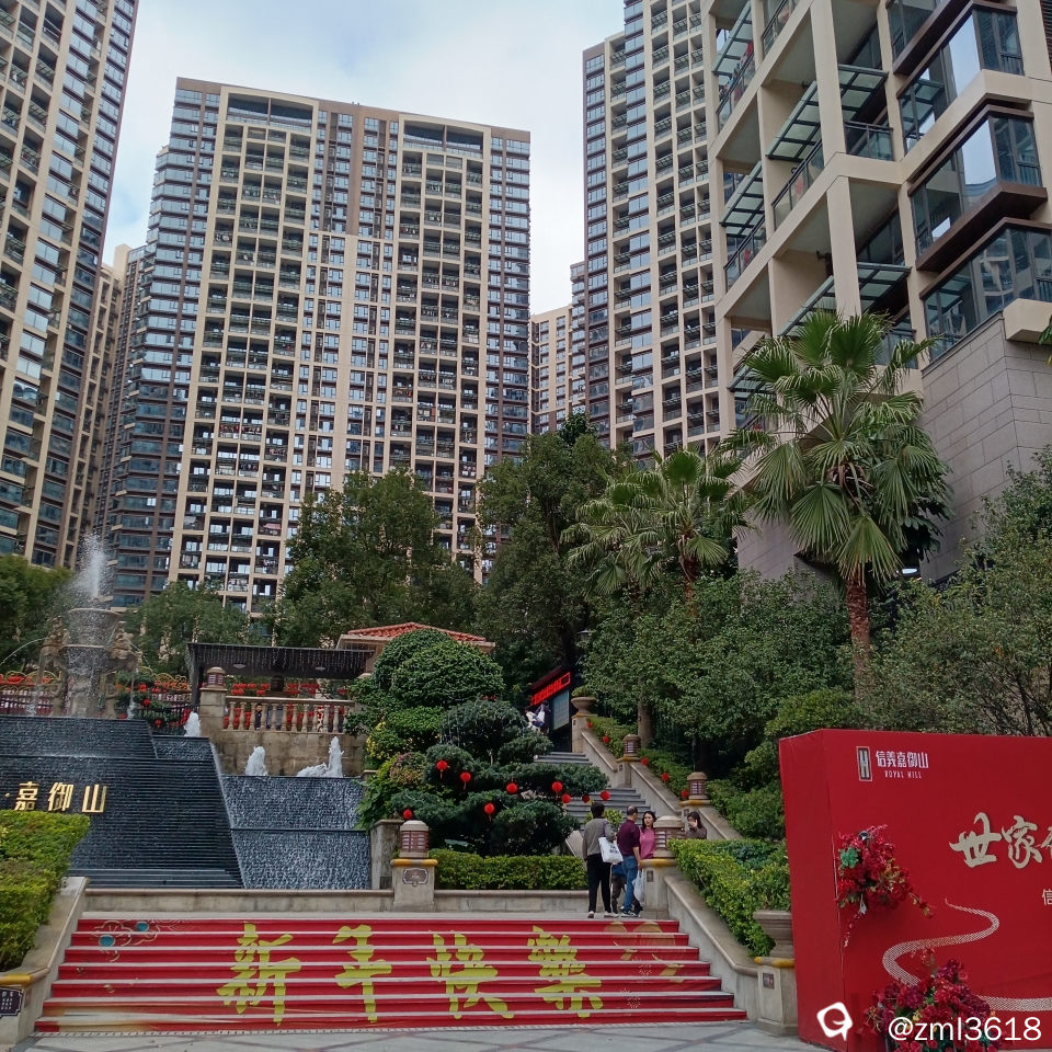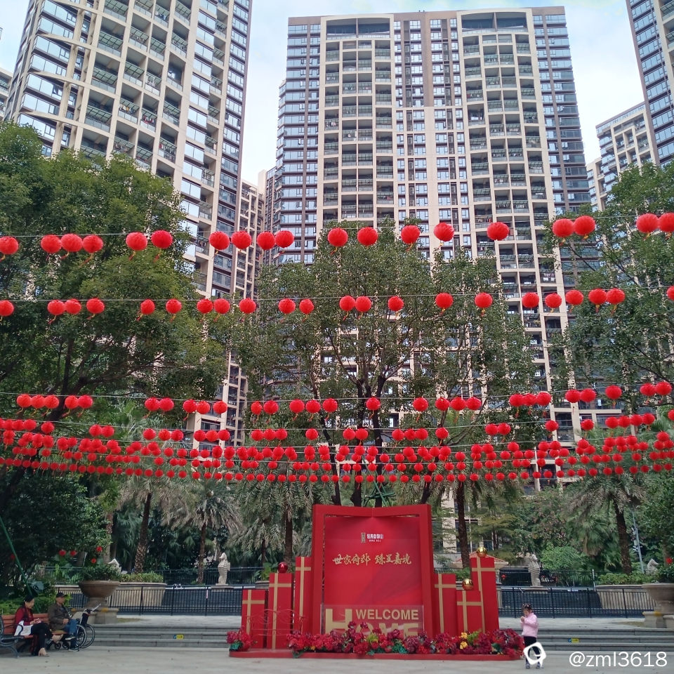 小区里张灯结彩迎新年 ,喜庆和谐。