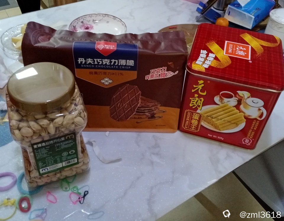 单位发给职工的 坚果及蛋卷 、饼干。