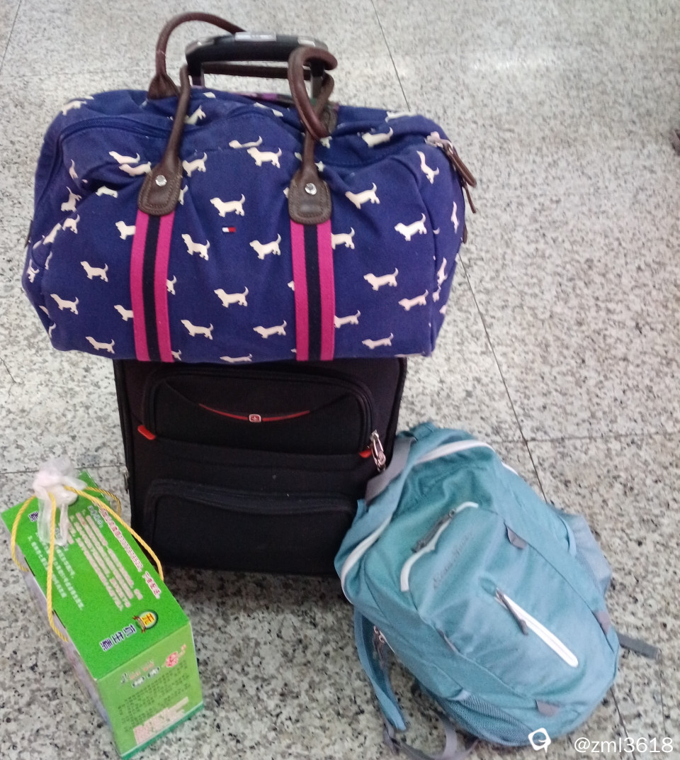 东西太多,实在是揣不下了。(生鲜的东西不想快递)行李箱、行李包;纸箱,带的全部是桂林土特产 ,沉甸甸的,饱含着的是父母对孩子的爱,带去的也是慰籍游子的乡愁。咱连拖带扛的,累并快乐着!