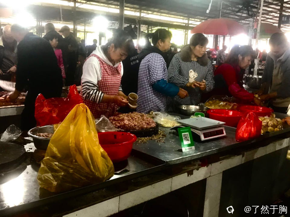 打好水后返程,到达九屋圩时,已是一点多了。市场上人不是很多,但各种货物齐全。最有九屋特色的九屋圆子及冬笋,既新鲜又物美价廉,我们各自买了点心仪的年货后就打马回朝了。
