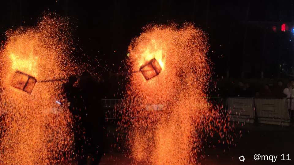 火壶表演属于国家级非物质文化遗产,关于其起源地存在不同说法,有说起源于中国湖南省湘乡市壶天镇,火壶表演是把烧好的超过800度高温木炭,放入带提手的铁网,就如举重选手的杠铃,火壶分别挂在杠铃两边,这个火壶是一个铁网,随着表演者上下抖动杠杆,两侧的铁网,火星从火壶的网网四溅升腾,形成如烟花的火星,火蛇,非常漂亮。
