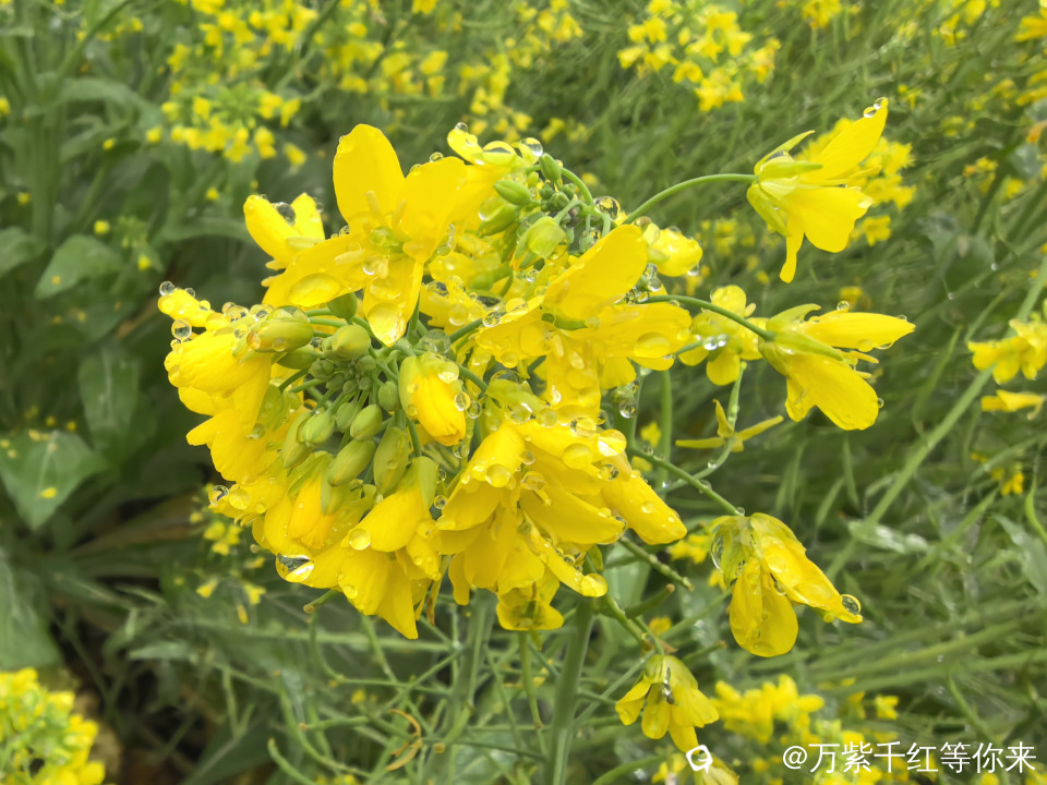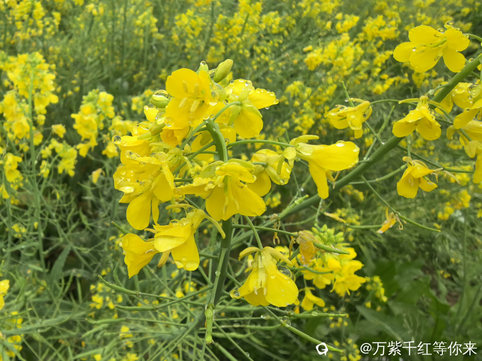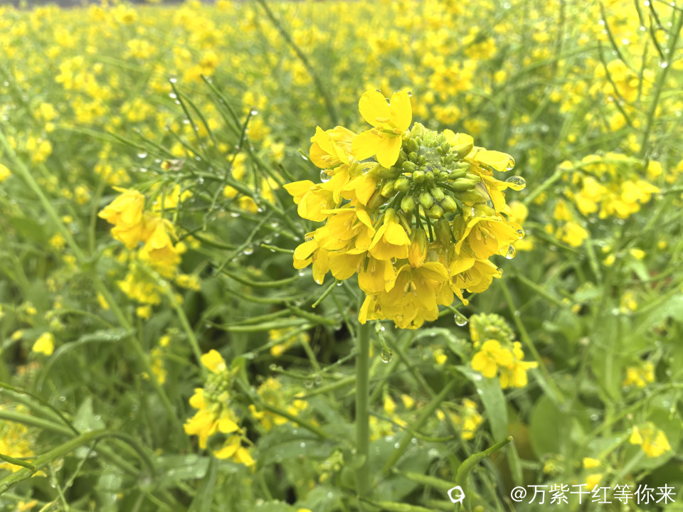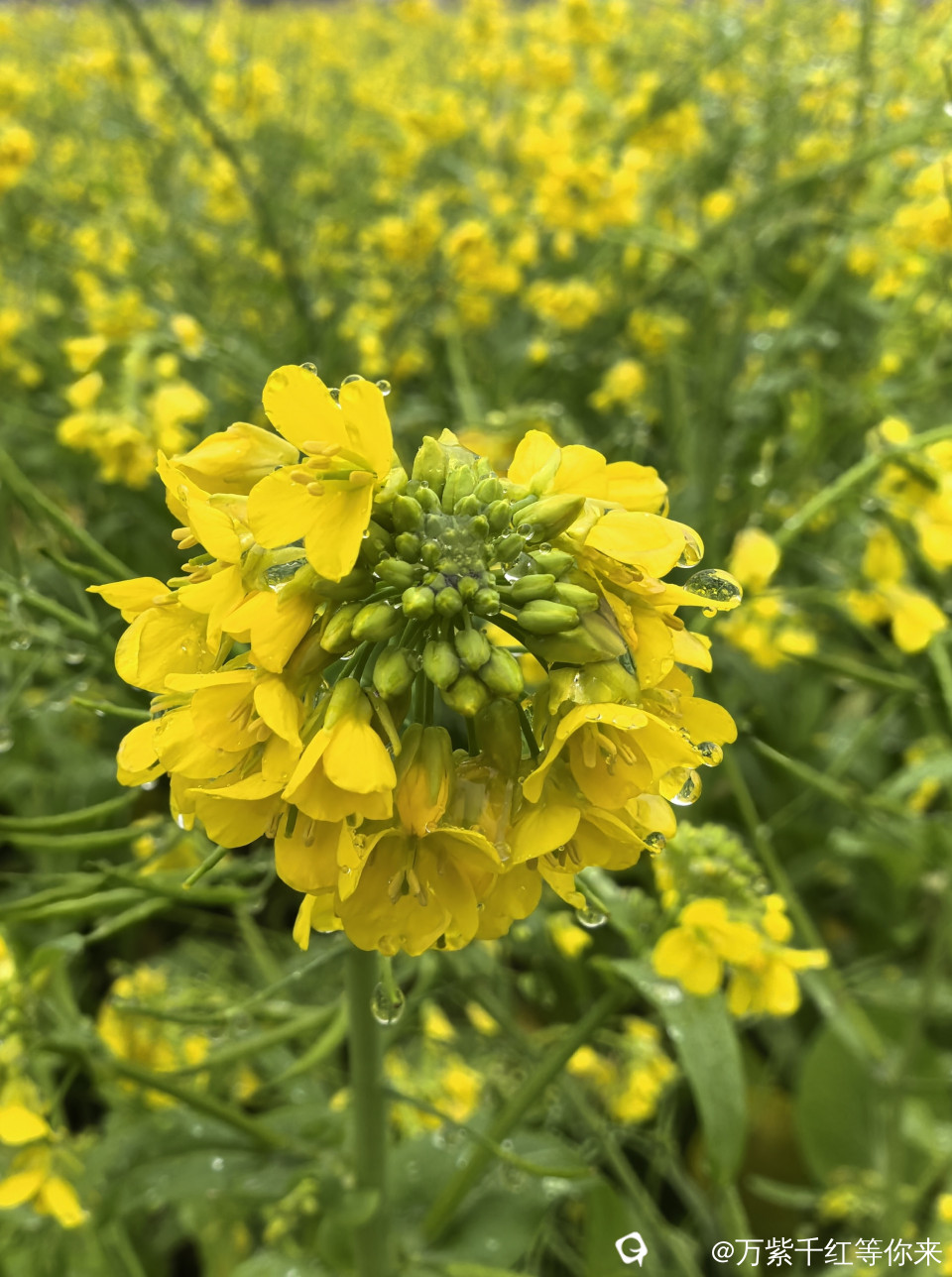 雨中的油菜花瓣挂满了水珠,黄色的花瓣,绿色的茎叶,还有蜜蜂在其中穿行;交织成一幅生机盎然的春天画卷,让人们感受到了大自然的美丽与活力。