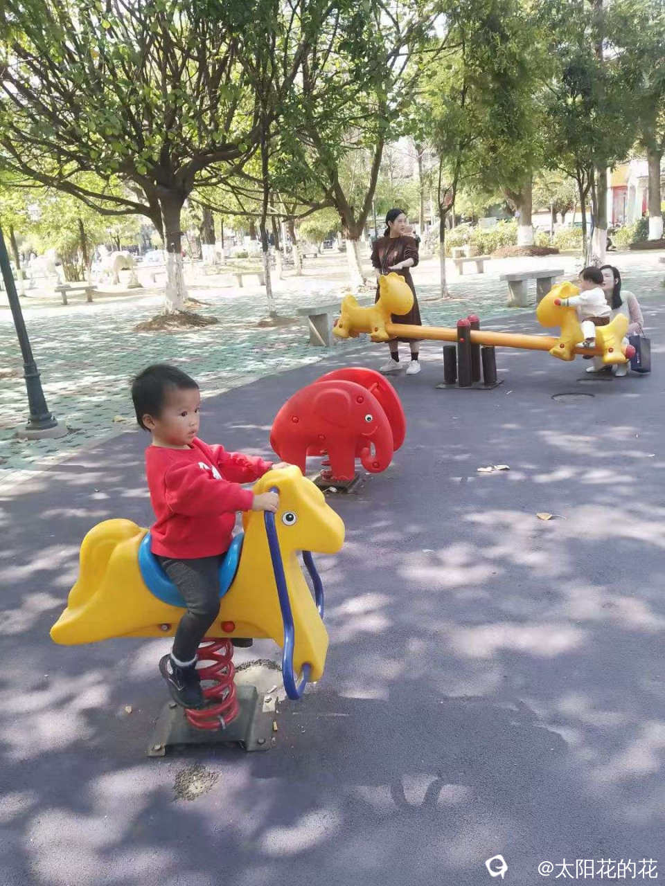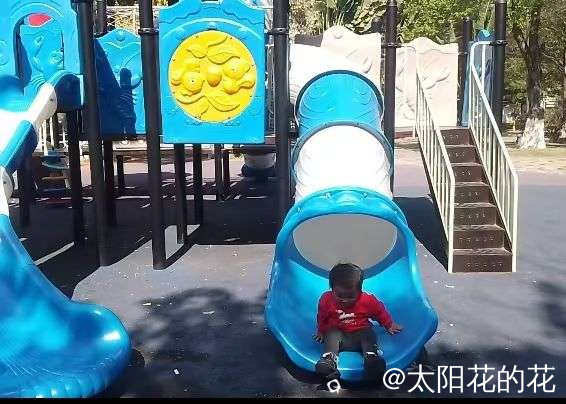 回家的路上又带小朋友去公园玩玩滑滑梯……