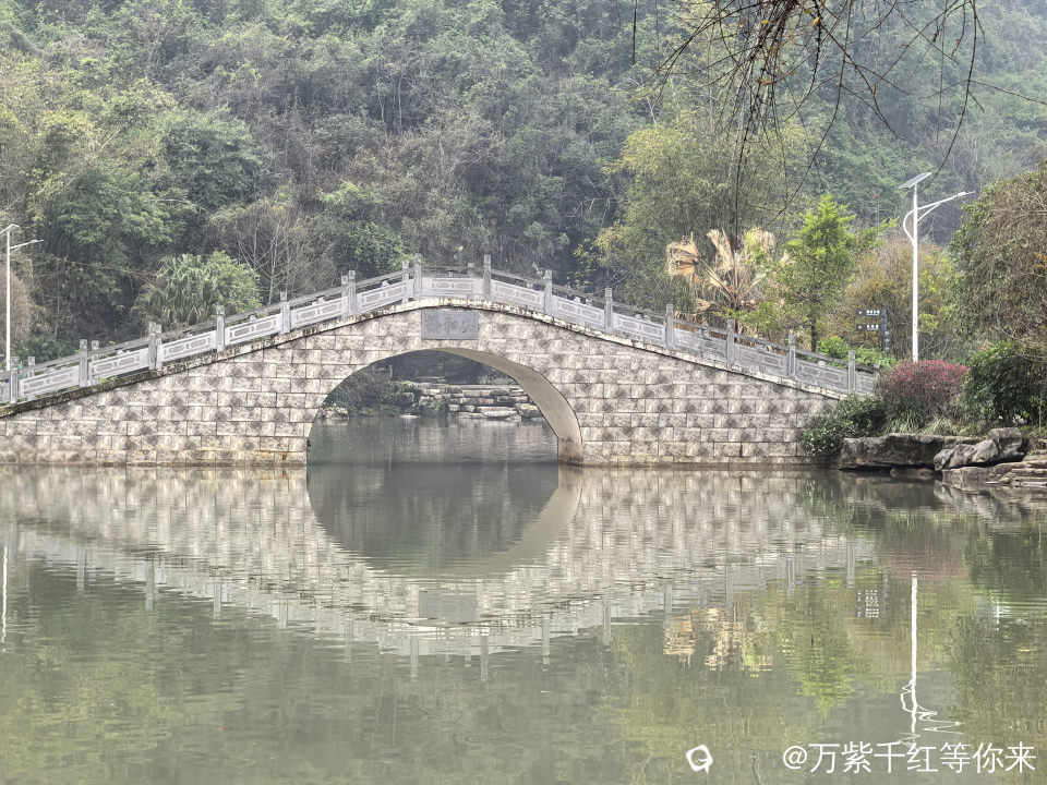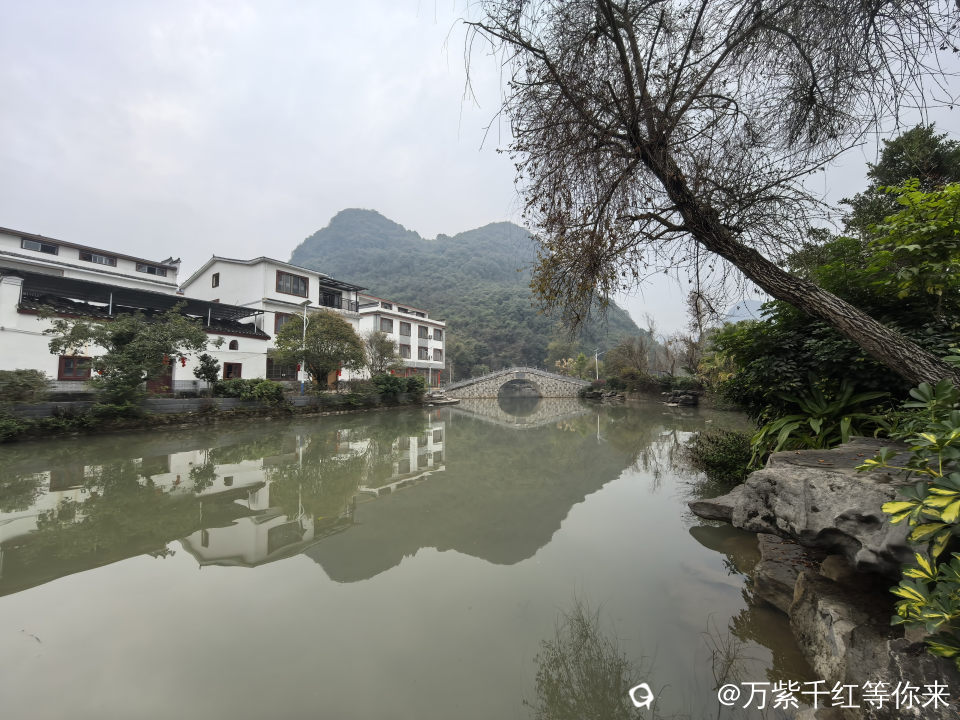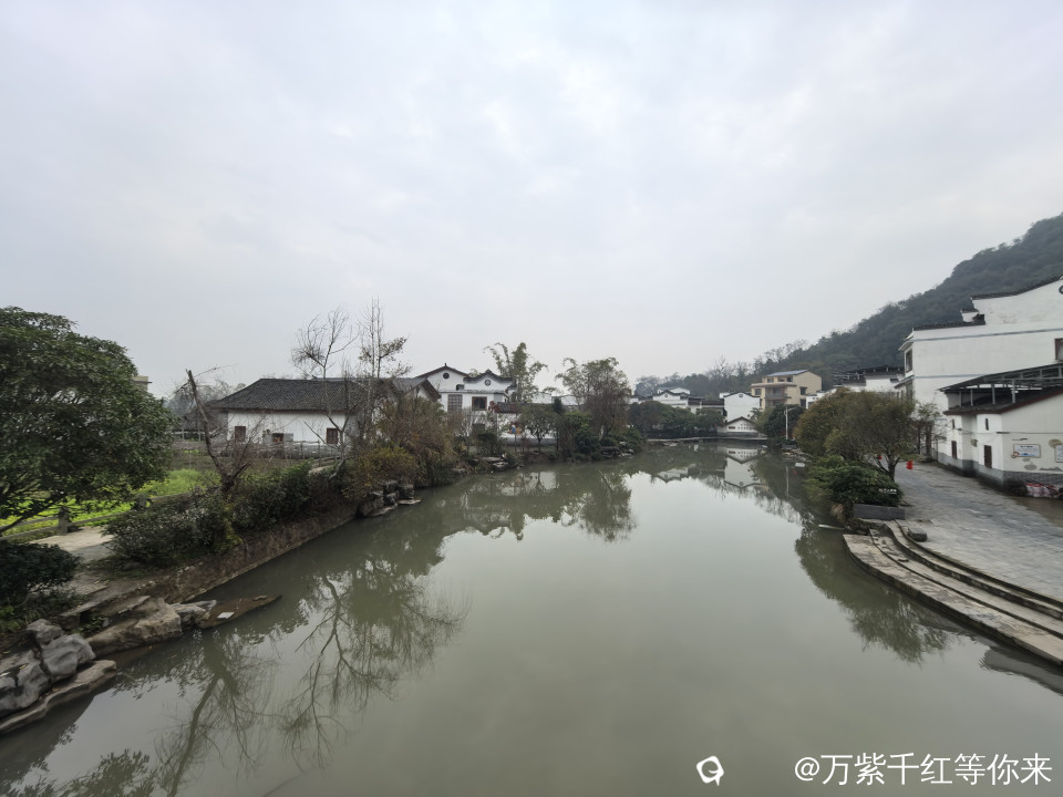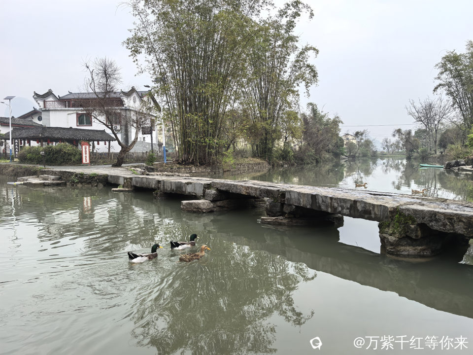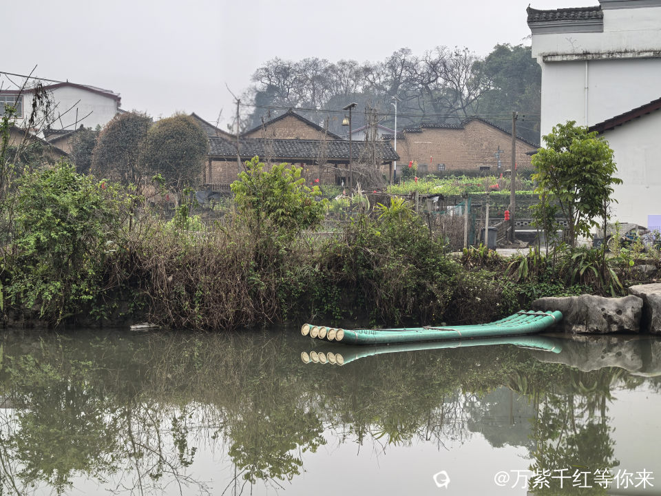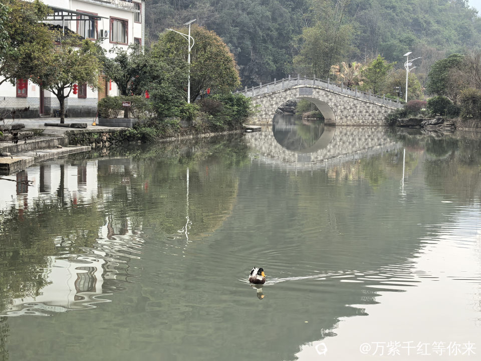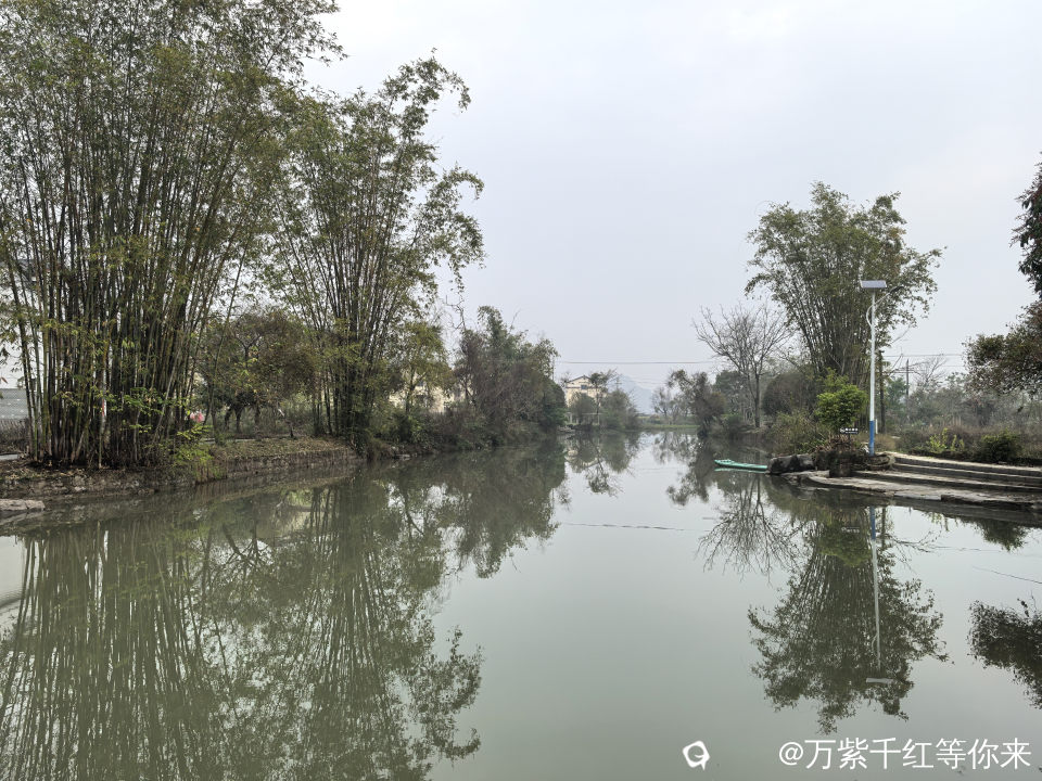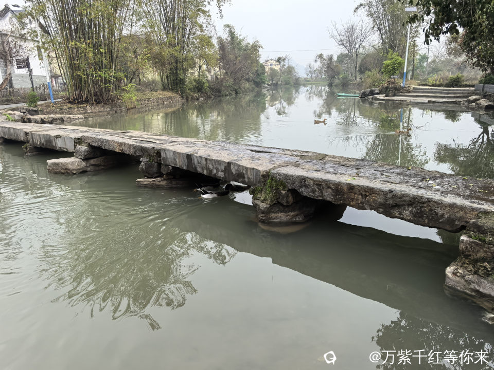 村里最美的风景,就数这条小河,静静的镶嵌于裸露的小石桥之间;成群结队的鸭子在戏嬉,岸边的小楼房倒影在水中;小桥流水人家,点缀着青山绿水之间,颇有些江南水乡的味道。顺着村路绕着山边走,山边是最普通的农村景色,田里种有菜花、窝基笋、大白菜、芥菜、葱花等农作物,及篱笆、女人、狗,或许还有那延续了几千年恒古不变的人文故事……