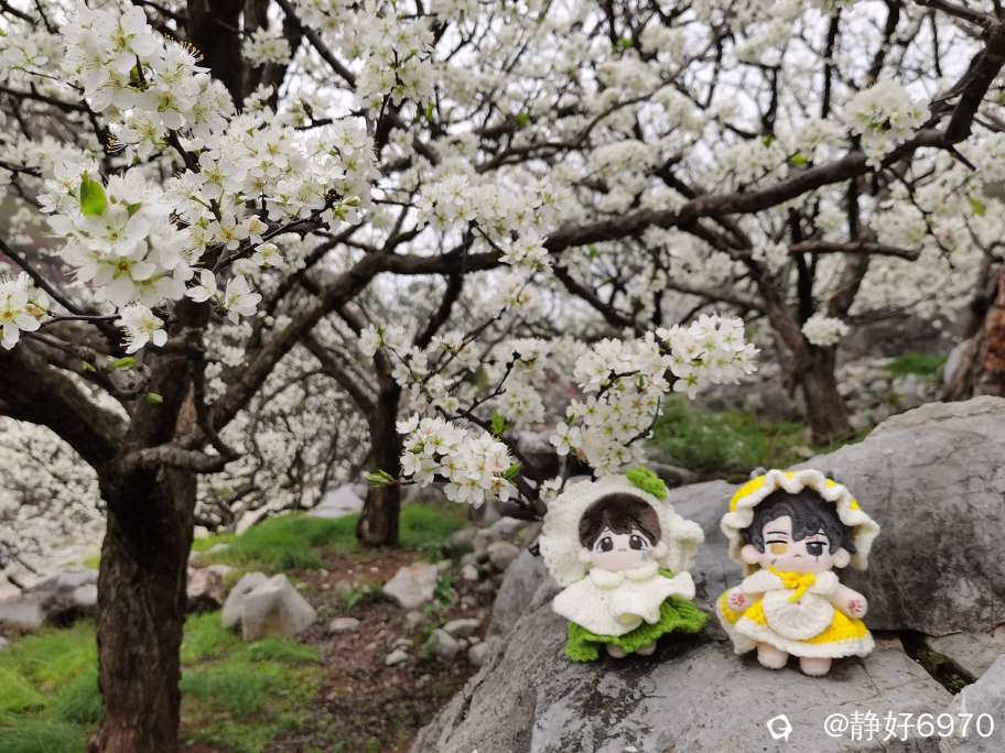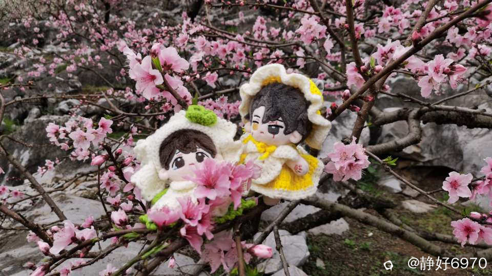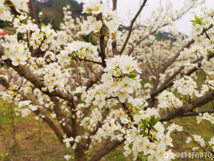 看见这美丽的桃花梨花,大家都挪不动脚步,只好停驻不前,跟鲜艳的桃花梨花打卡留念。
