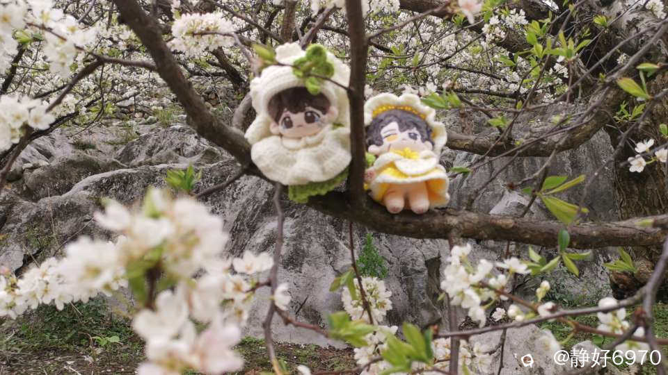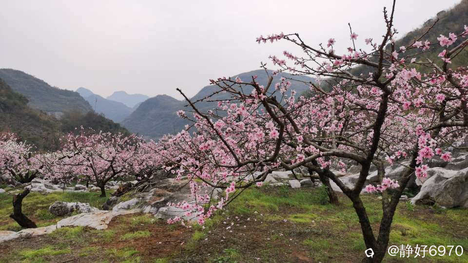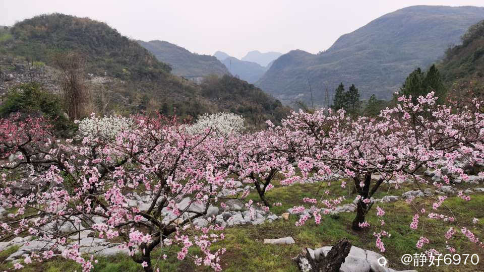不经历风雨,怎能见彩虹!虽然途中发生了小插曲,但是不影响心情看美景,走过一段蜿蜒曲折之路以后就是漂亮风景。一路上可以见一簇簇,一朵朵开的漫山遍野的桃花梨花。桃花和梨花相互映衬,犹如一副美丽画卷……