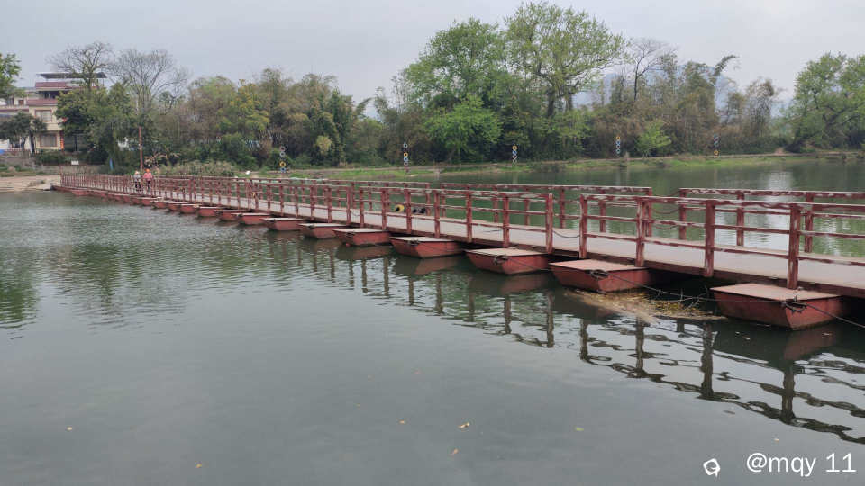 站在浮桥上远望,成群结队的白鹭,翩翩起舞,时而飞翔,时而高空直落,一头猛扎入甘棠江中扑鱼,美味的漓江鱼,又可以到嘴了。