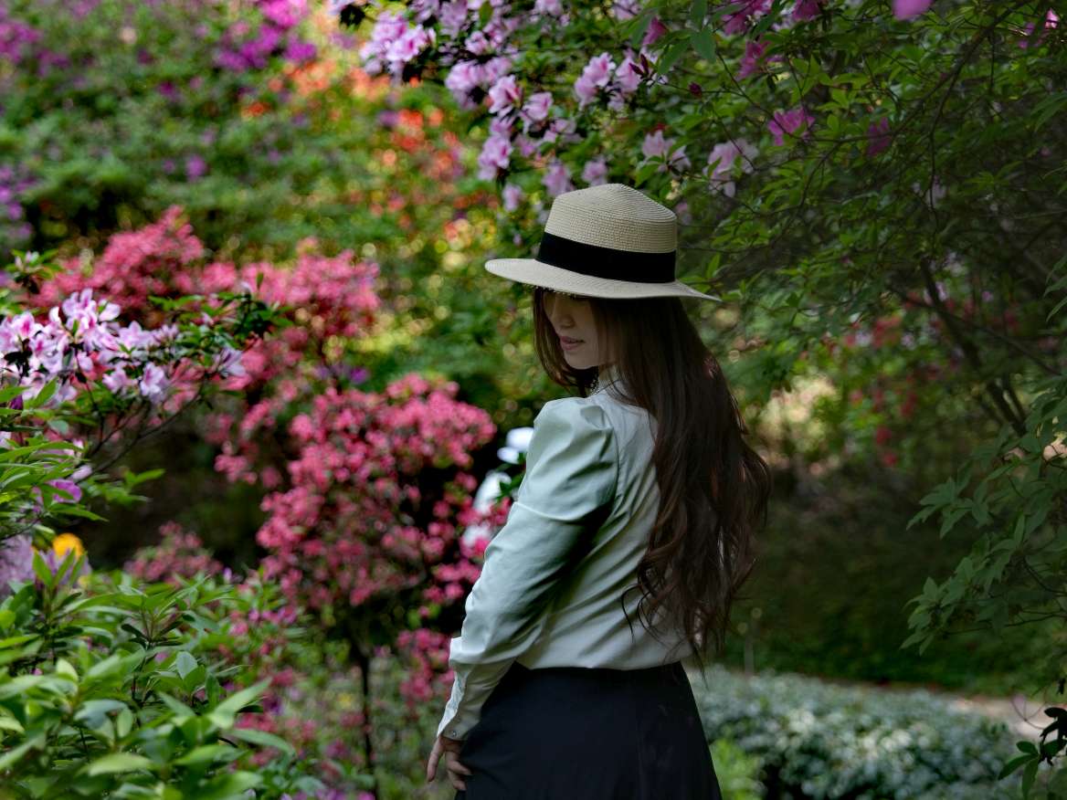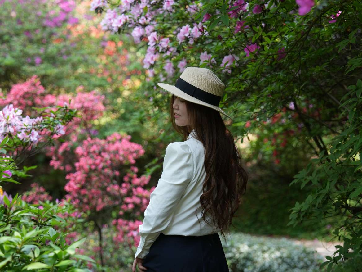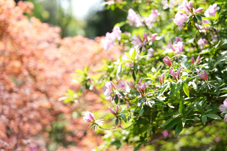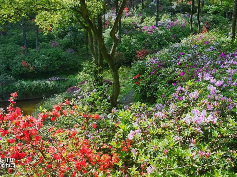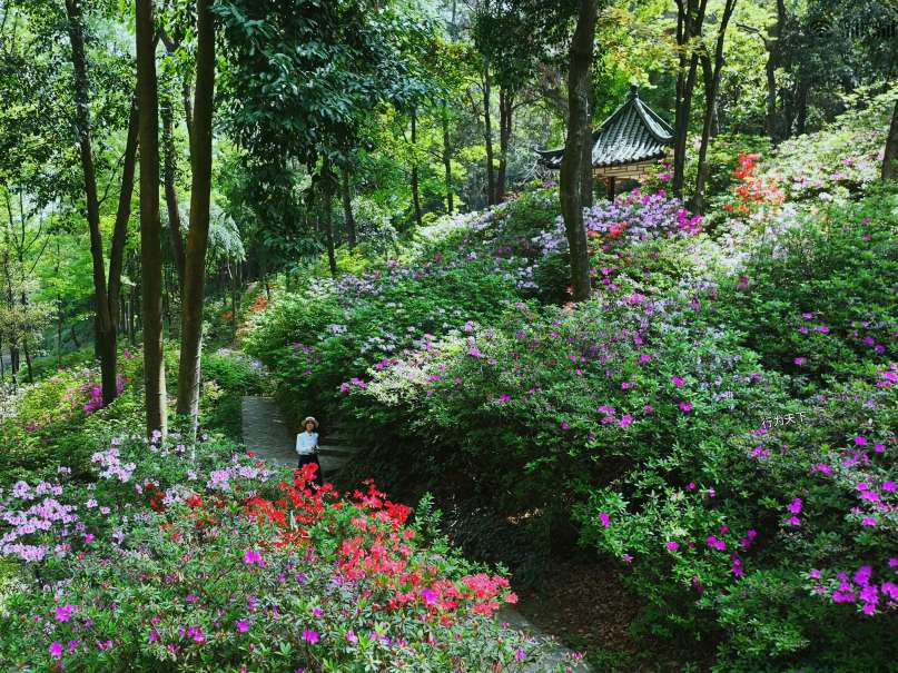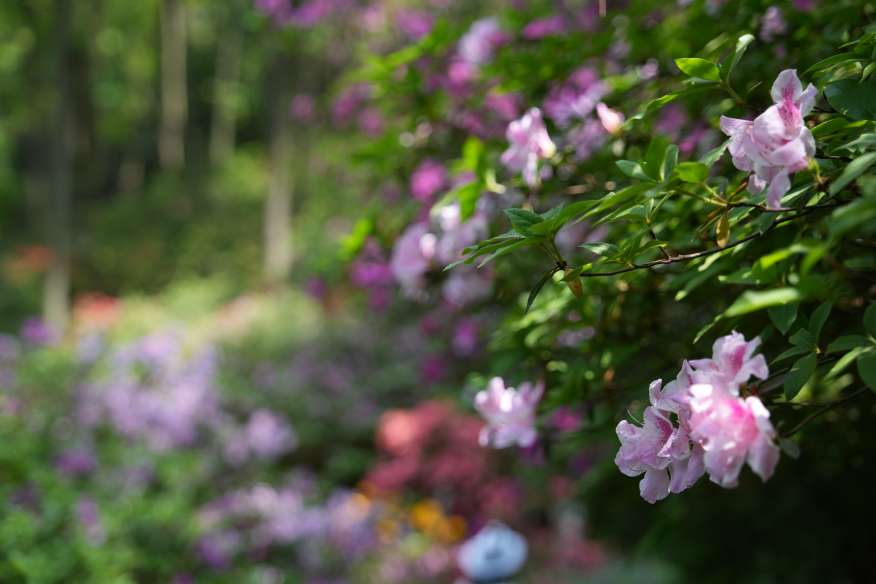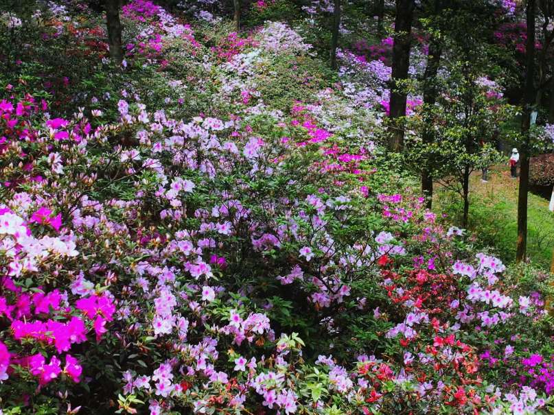 远处楼台上,有人吹起笛子。笛声清越,穿花度水而来,与鸟鸣相应和。几个游客驻足倾听,面露愉悦之色。杜鹃花期不过旬日,但这植物园的春色,却将绵延数月。