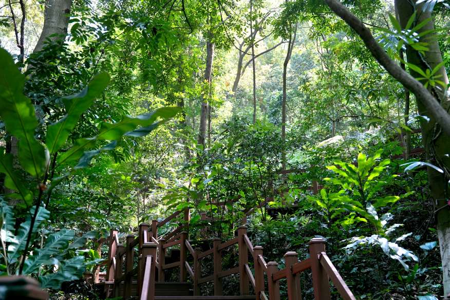 植物园在雁山区,占地颇广,据云有上千种植物。园中有山,山不甚高,而丘壑自具;有水,水不甚广,而曲折有致。