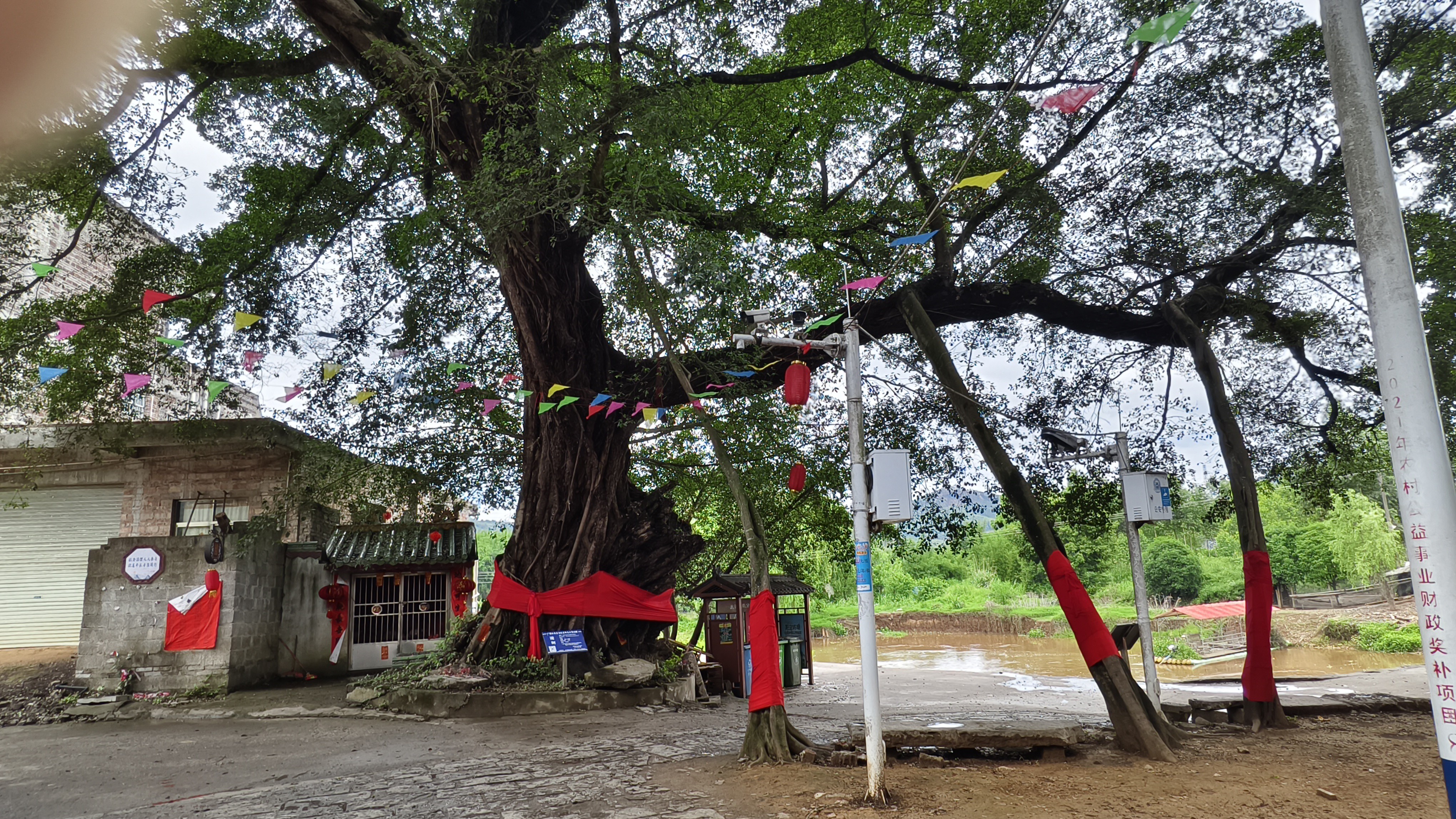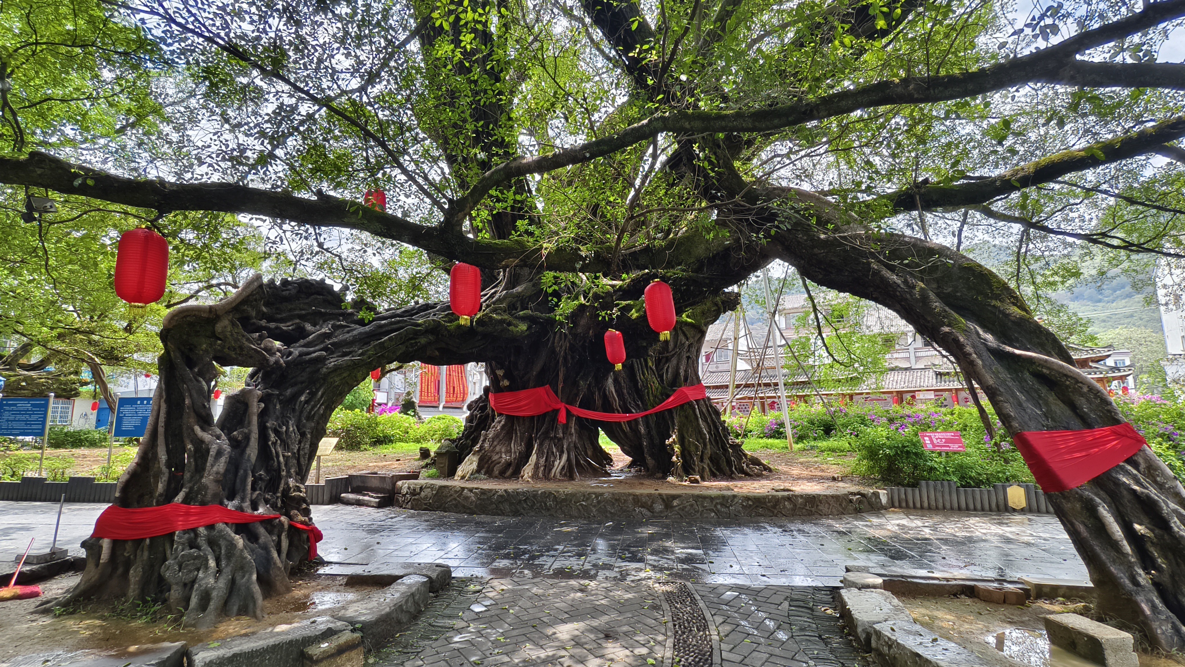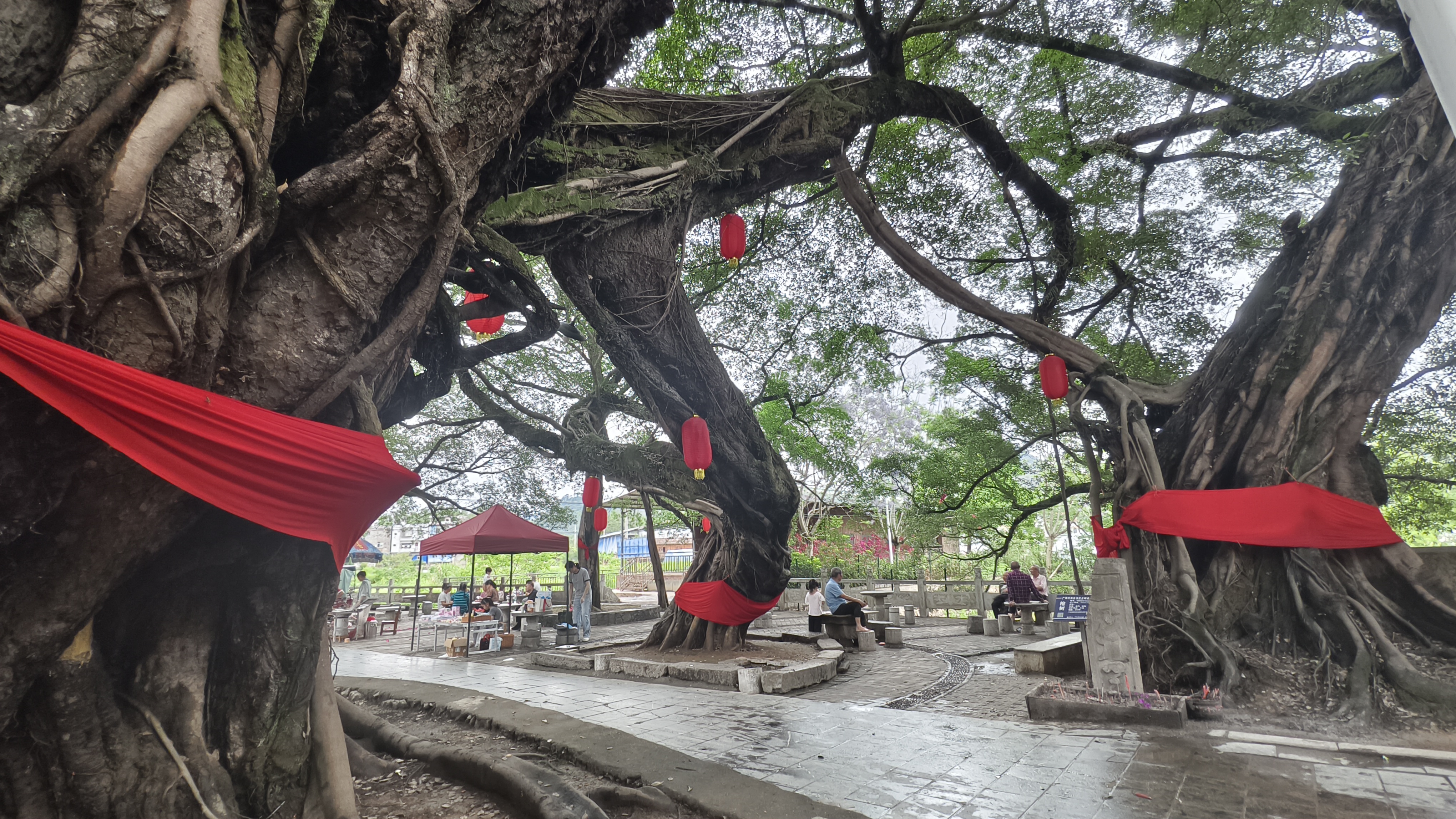 当地村民们将古榕当作神仙祭拜。榕树树龄有几百年,有上千年的。树上都有大红绸布披身,可见当地人对这些榕树真是喜爱至极,爱护有加啊。