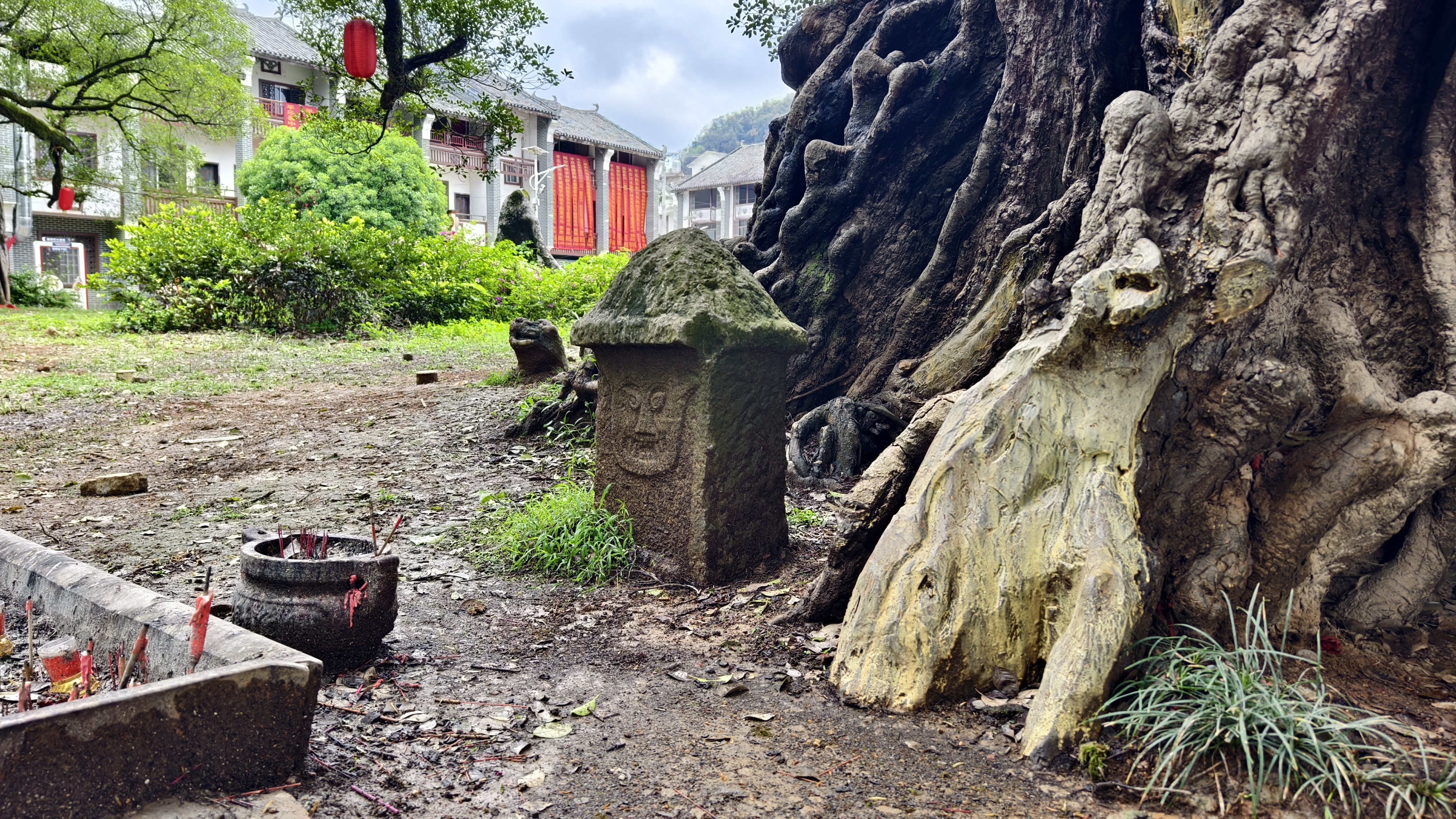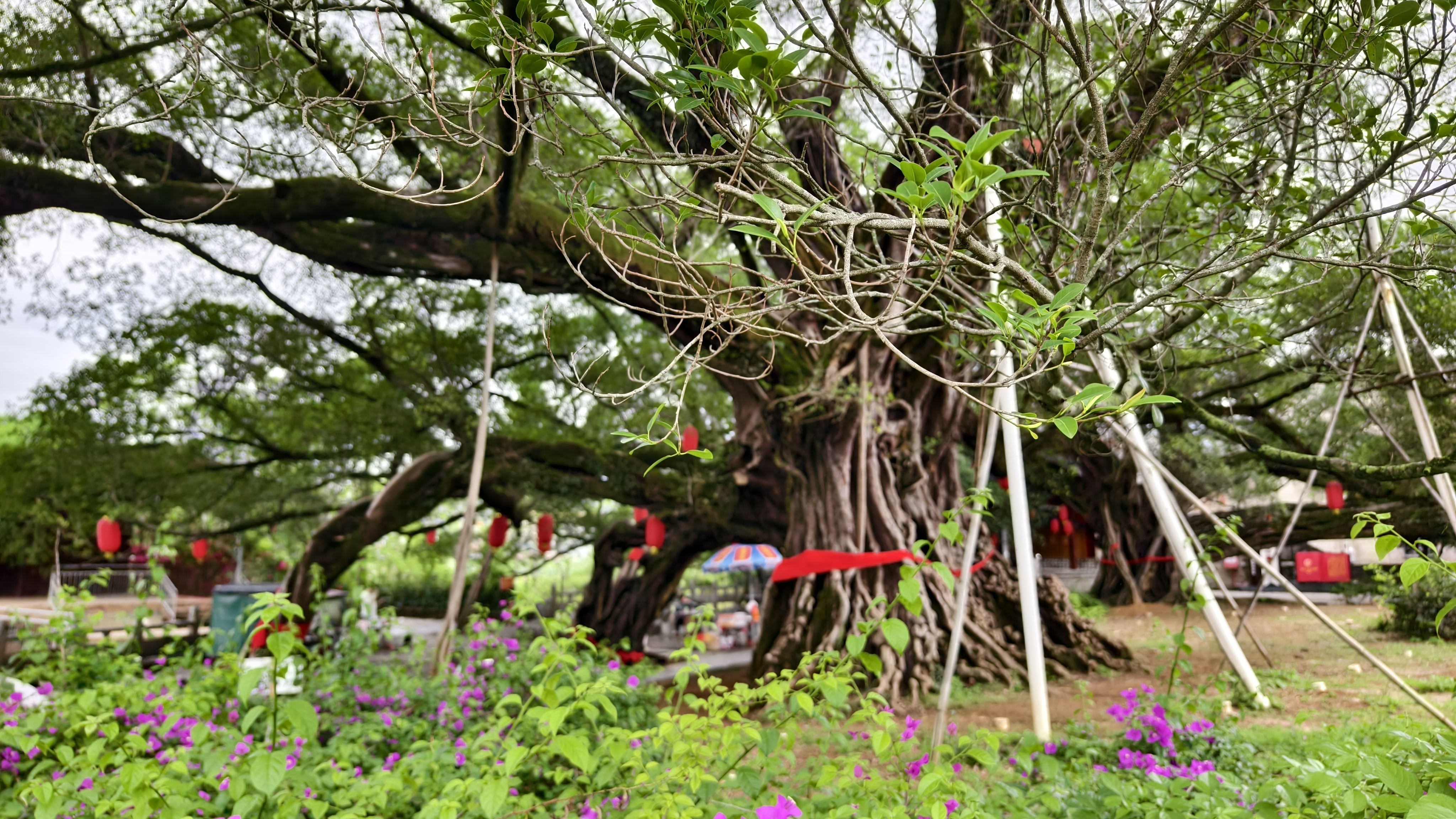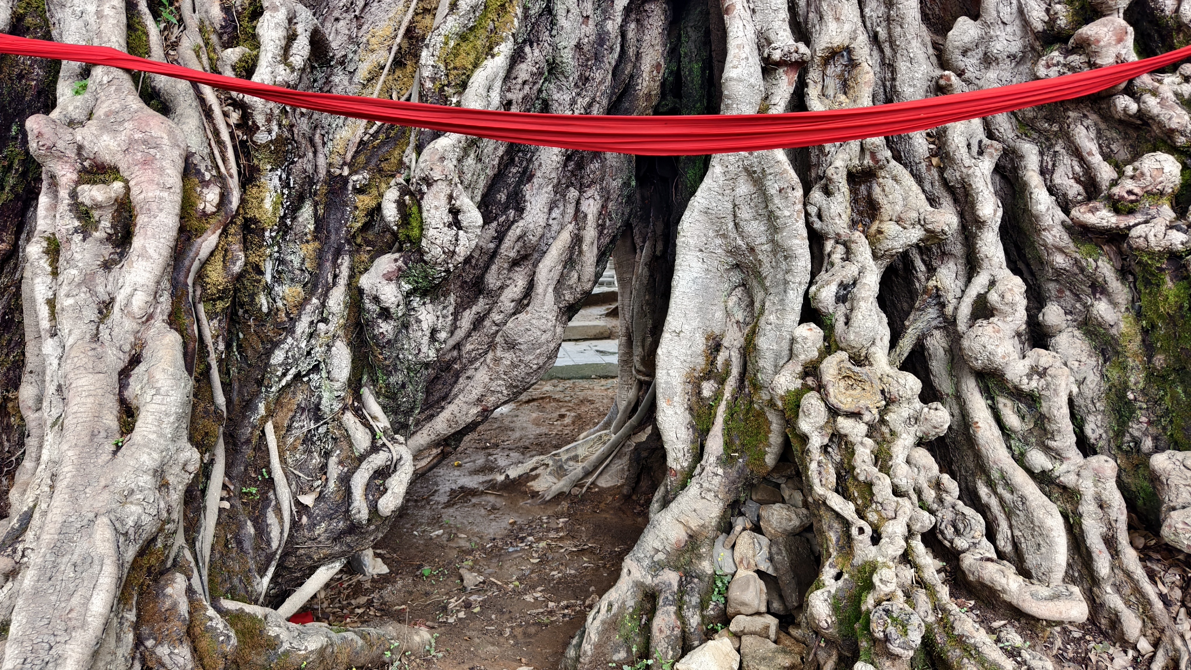 当地村民们将古榕当作神仙祭拜。榕树树龄有几百年,有上千年的。树上都有大红绸布披身,可见当地人对这些榕树真是喜爱至极,爱护有加啊。