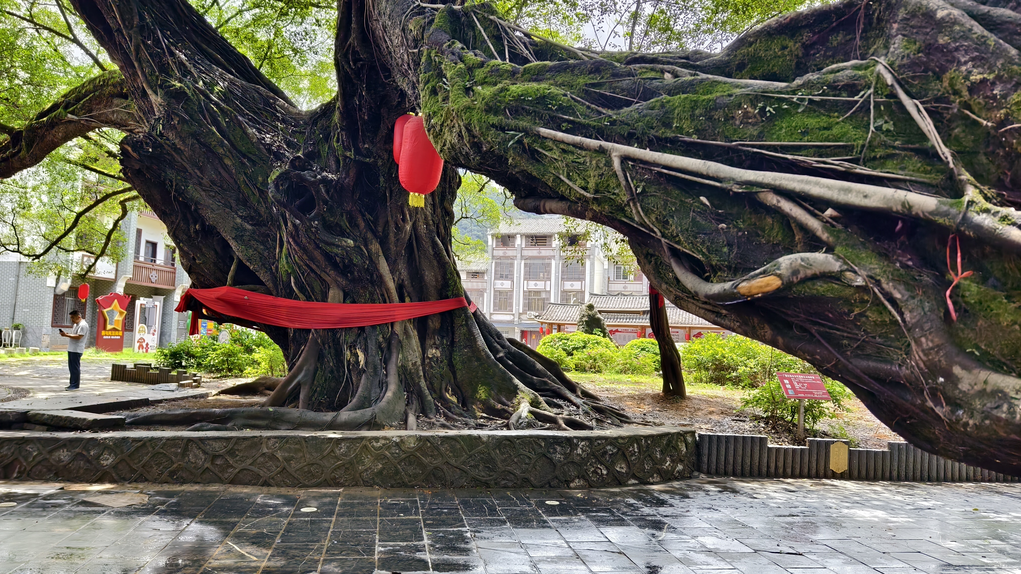 到古镇的原因之一是:身临其境观赏蔚为壮观的千年古榕树。