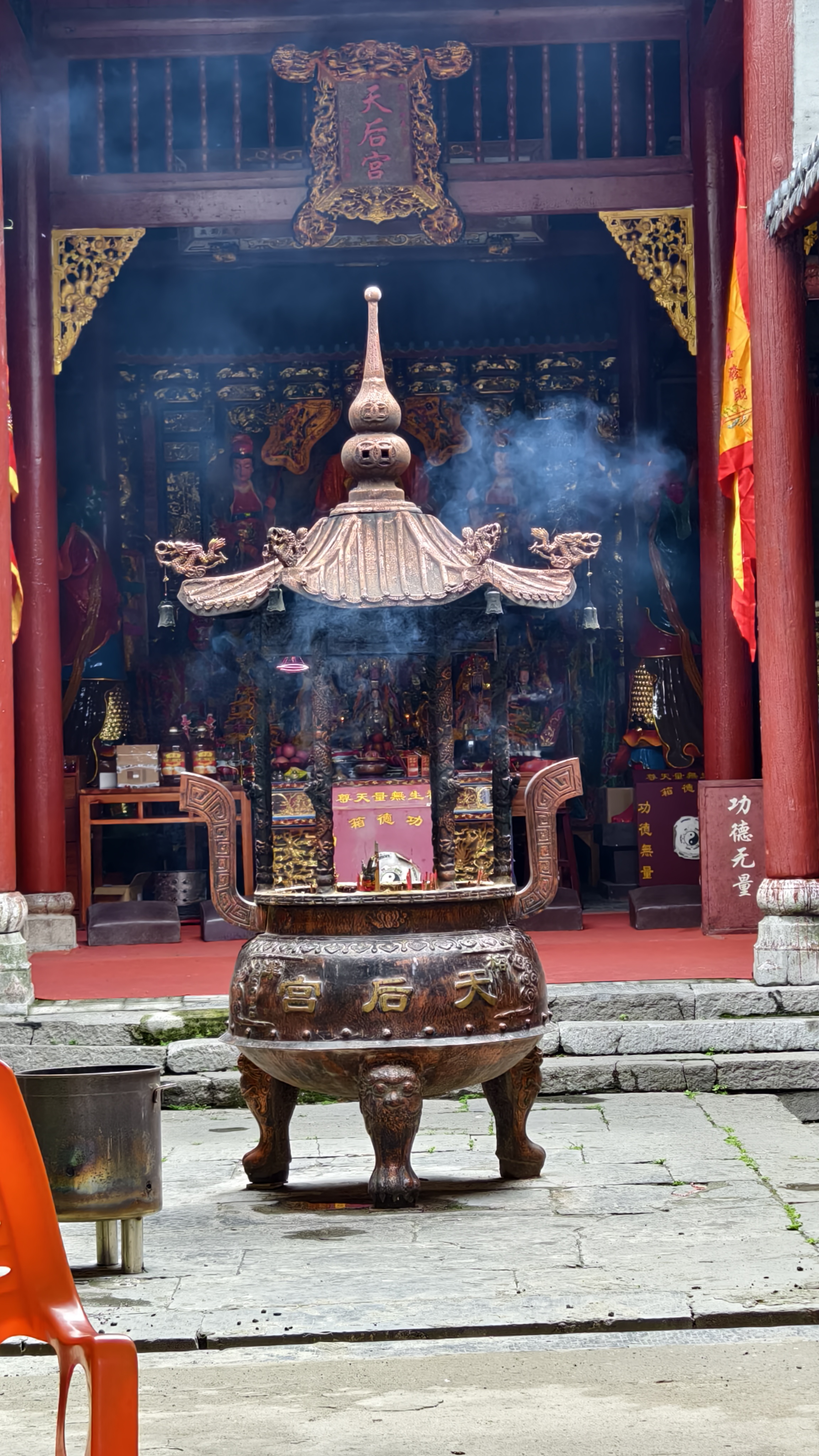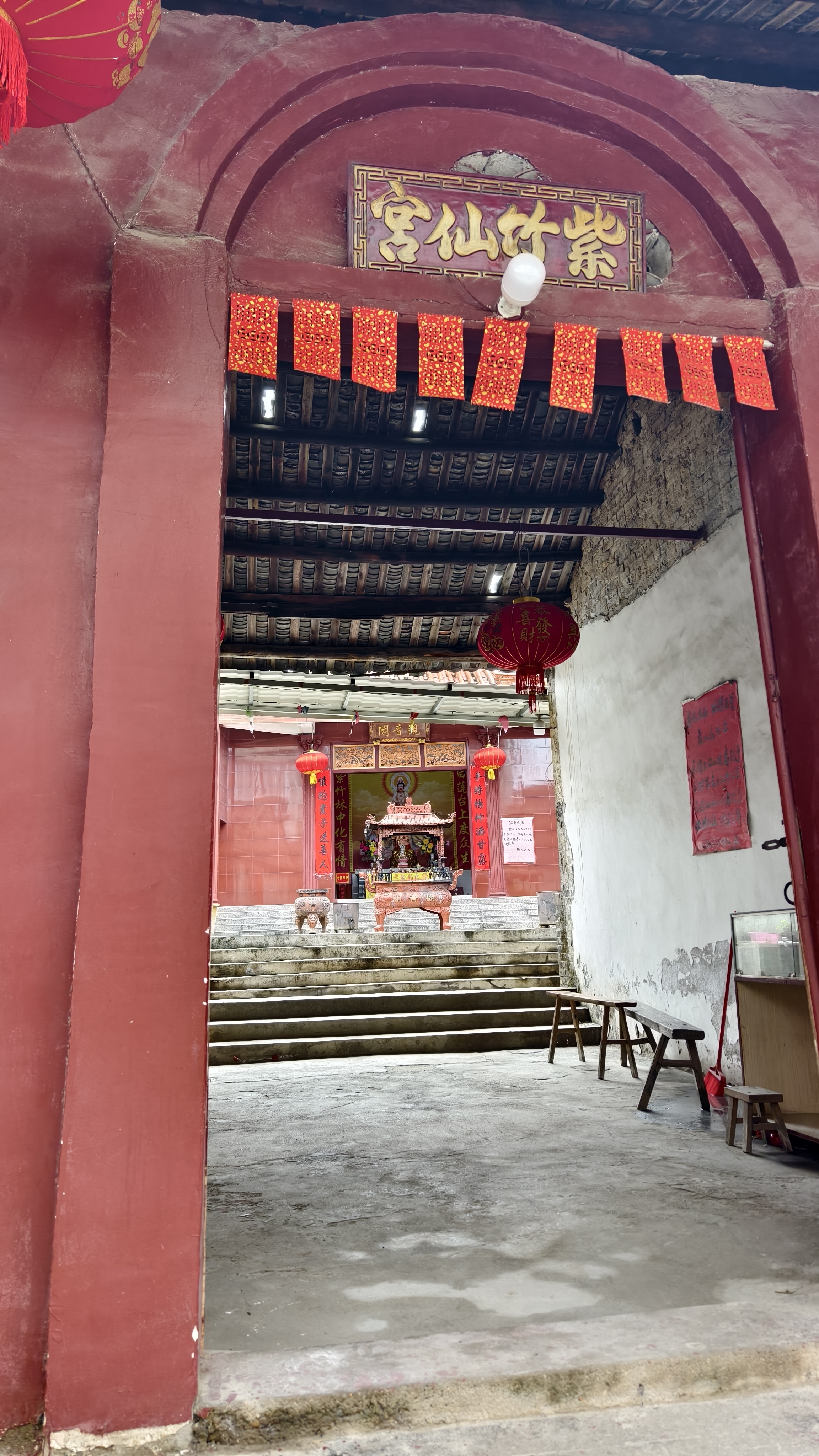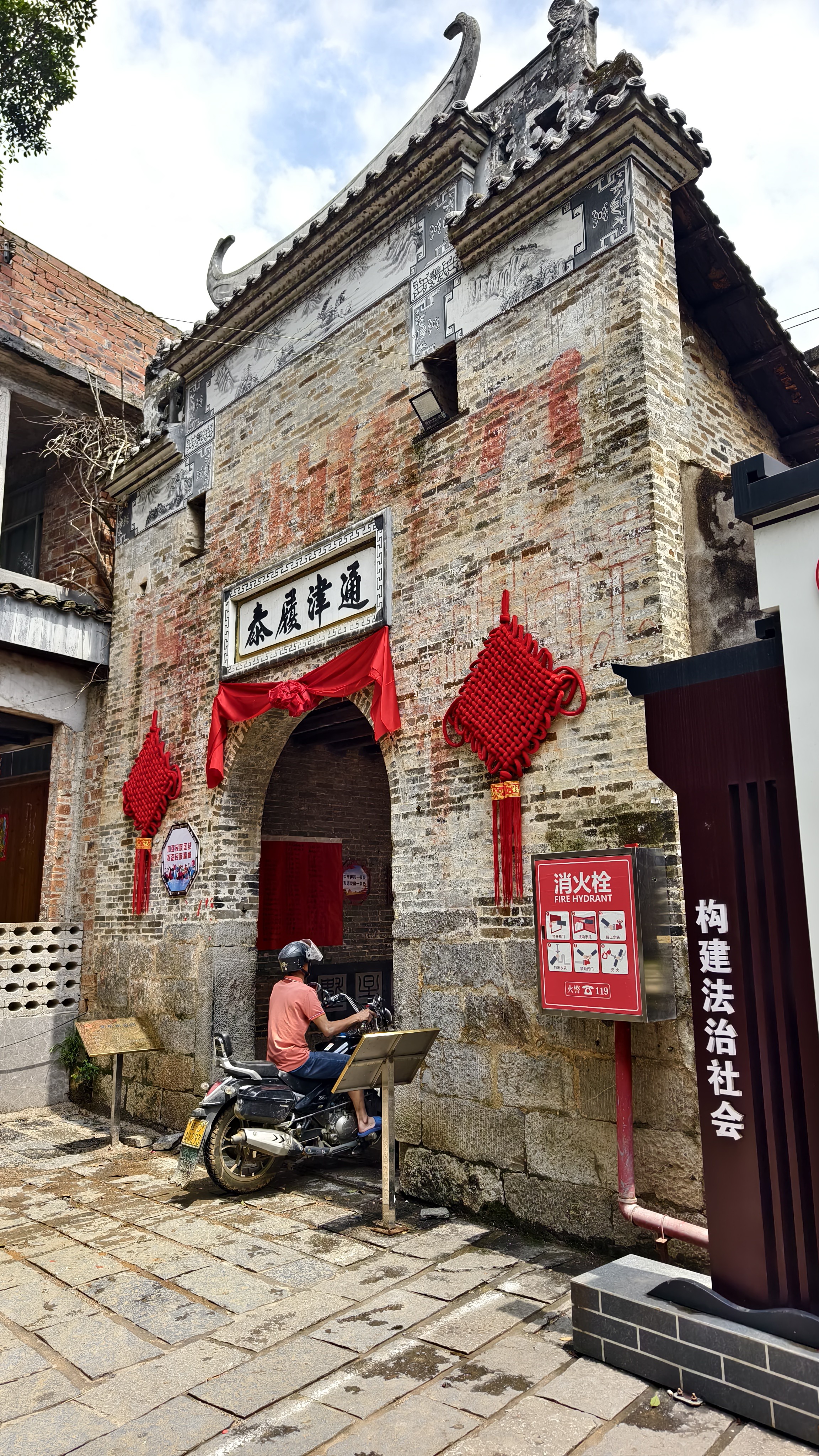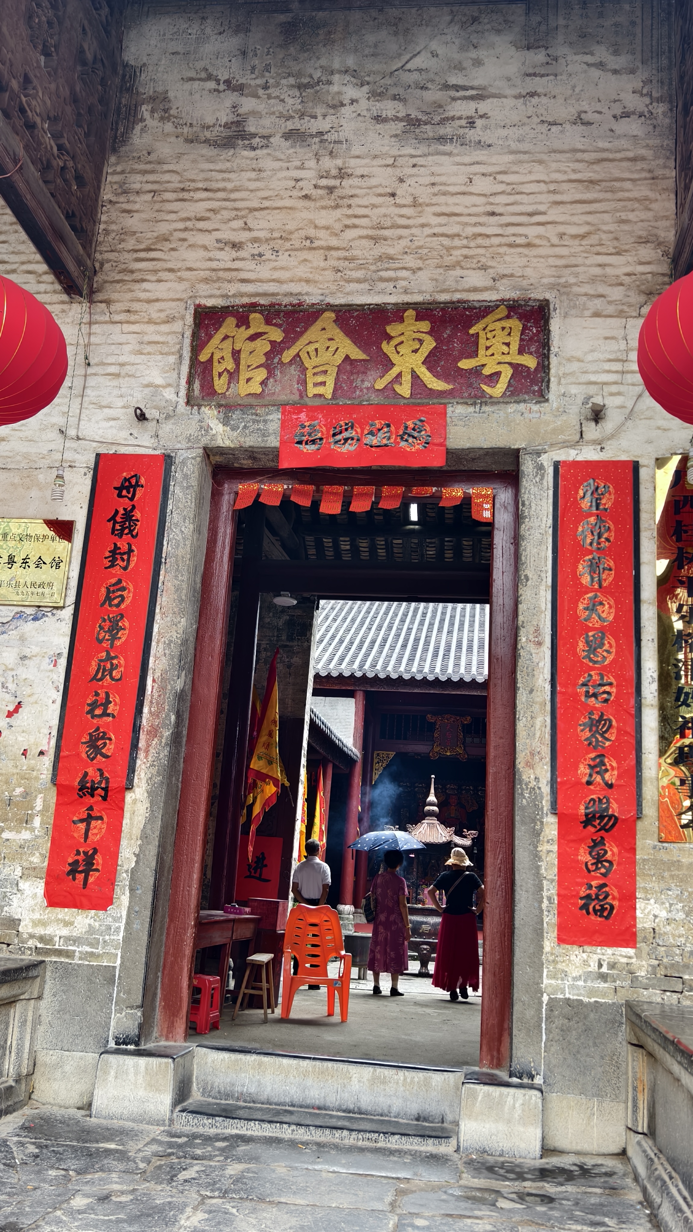 行走在古街,看到了许许多多从天而降的巨大捐款条幅。带着困惑咨询了粤东会馆的管理员,原来2025年4月18-4月20日,榕津古镇才举行了主题为“传承妈祖精神,乐享文旅盛宴”的非遗文化传承活动。信众多多,场面盛大。妈祖巡游,潮汕英歌舞都是非常有特色的。听完介绍,感觉错过了一个亿。