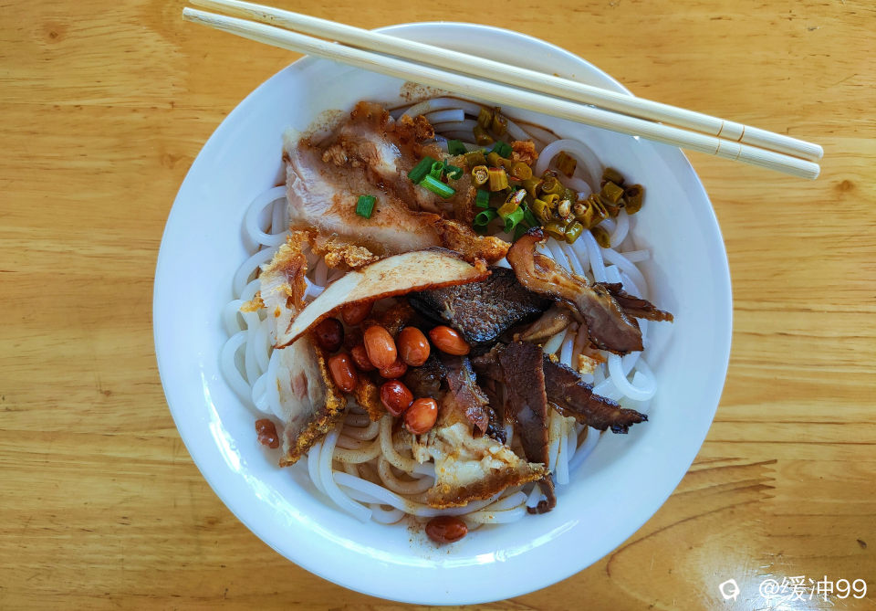 小时候,日子简单而快乐,一碗米粉就能带来一整天的满足。如今,生活变得更加丰富多彩,却总觉得少了些什么。在这碗米粉里,我找到了那份缺失的温暖与纯真——不是因为味道分毫不差,而是因为它像一把钥匙,轻轻拧开了记忆的闸门:老屋檐下的柴煤烟、二楼飘来的小提琴曲、巷子里丁丁糖、麻叶树下的井水、街上收鸡鸭毛的呐喊、一分钱一颗的薄荷糖、豆巴鬼手拿小刀仔在地上“金沙江畔”.....,都随着这口米粉,一一浮现在眼前。