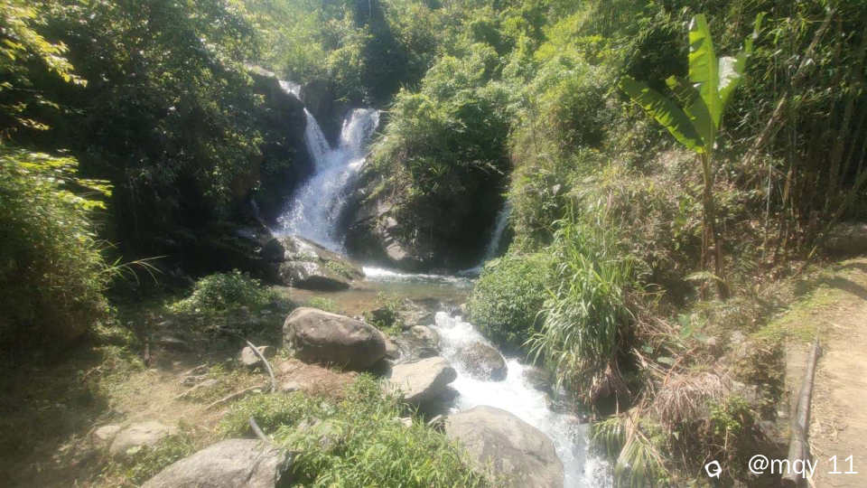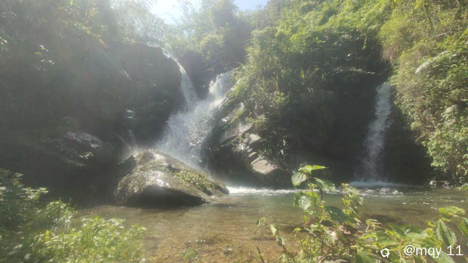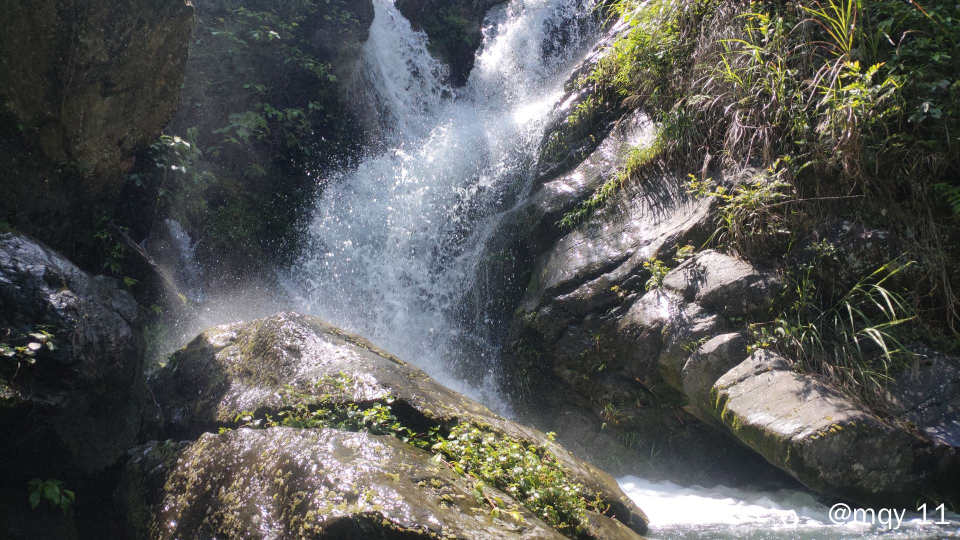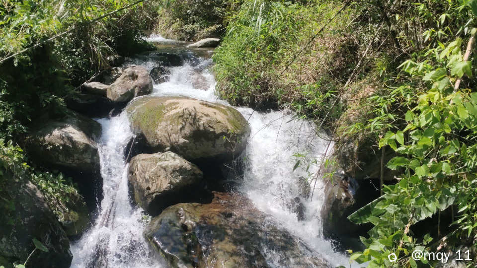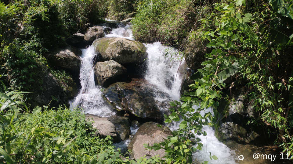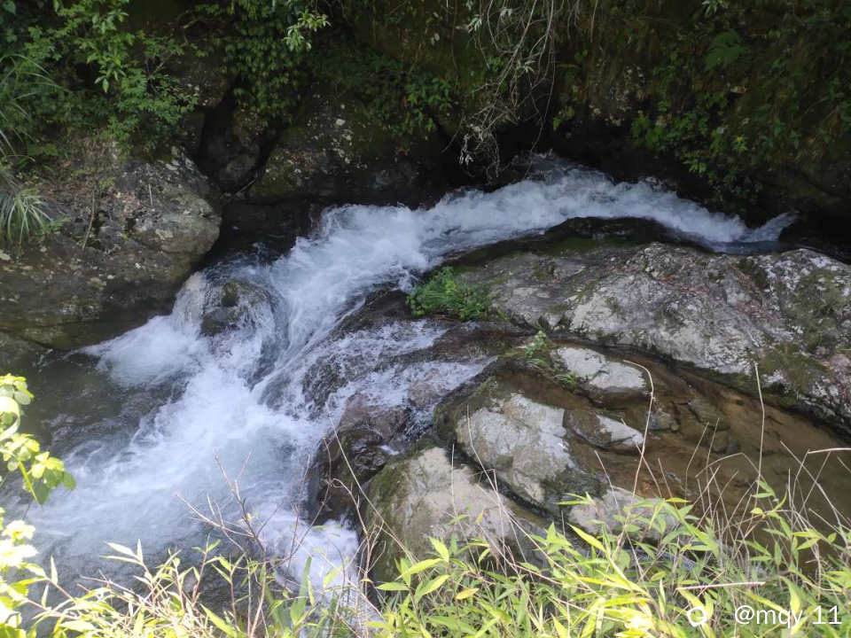山青水白,五月的雨季,也让白马村打破了宁静,因为白马瀑布群实在是太多瀑布,溪河之水,冲击山间的石头,声音哗哗作响。