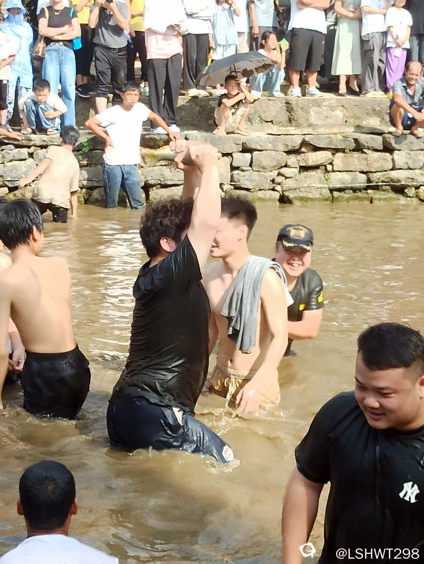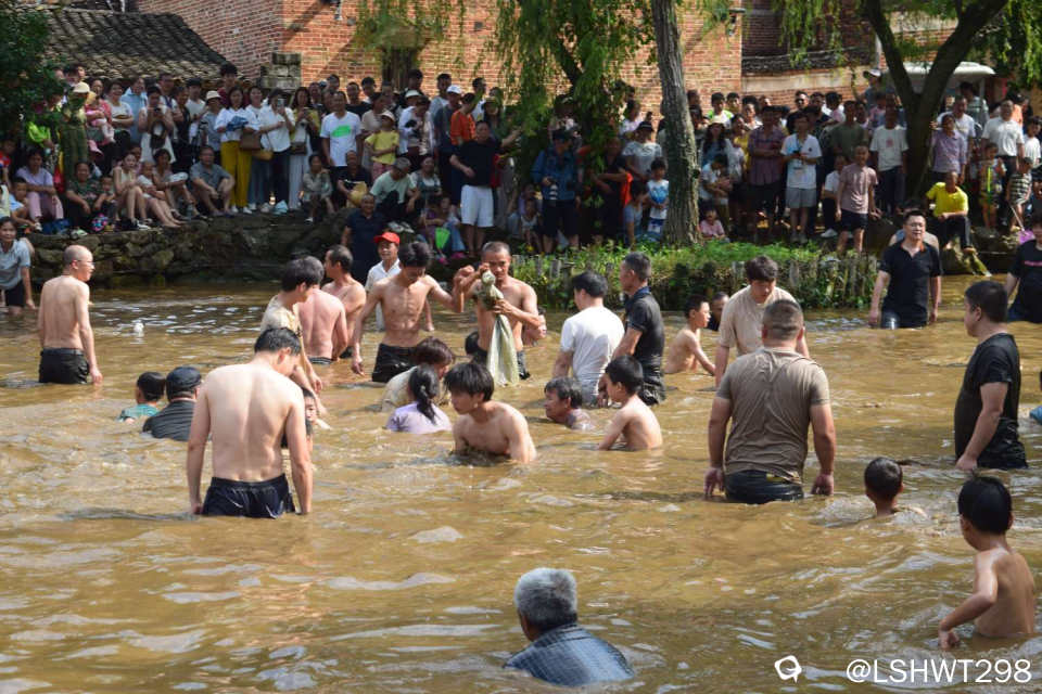 浑水摸鱼,捉鸭场景更是把节日推向高潮。之前还是清如明镜的池岸一下子人声鼎沸。。。