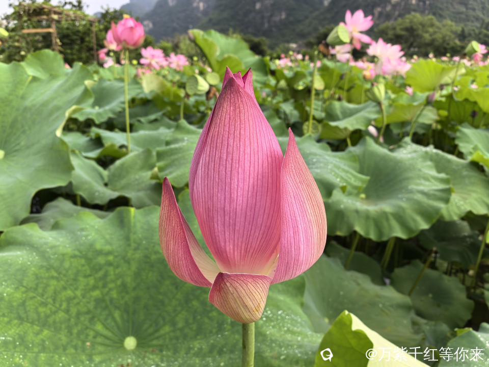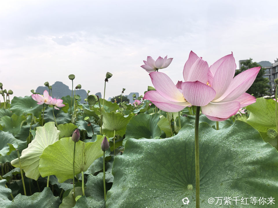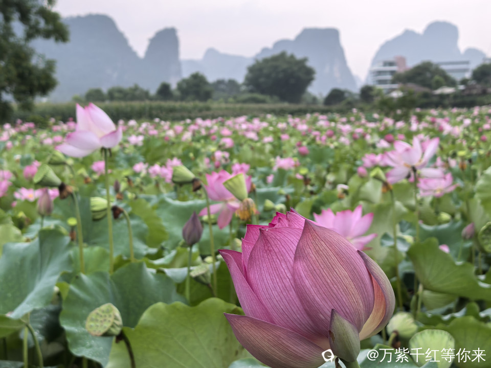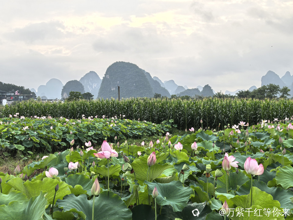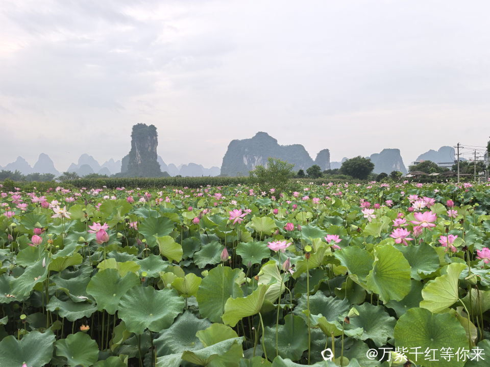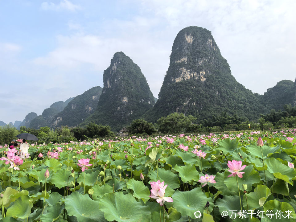 盛开的夏天一一荷塘,这里有最浓郁也最无瑕的荷花。每至夏天,心中便涌起对那片田田荷叶与灼灼荷花的向往。阳朔鸡窝渡的荷花就挥之不去,趁着闲暇,自驾到了鸡窝渡,眼前的景象宛如一幅徐徐展开的田园画卷。