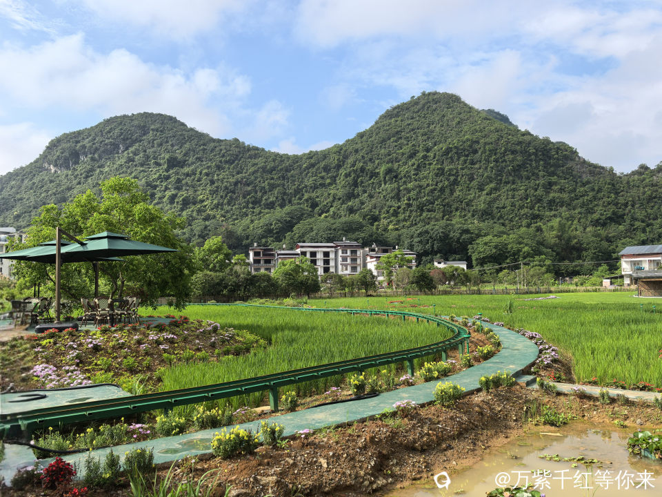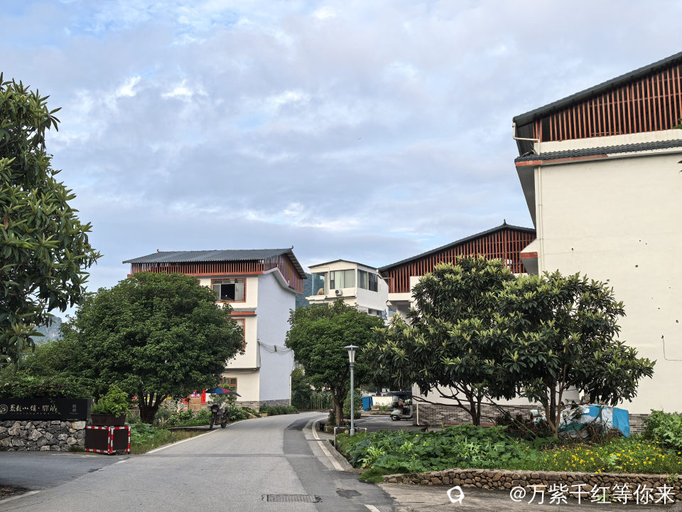 这里群山环抱,山峰形态各异,或如骆驼静卧,或似仙女亭亭玉立,在蓝天白云的映衬下,更显钟灵毓秀。村舍错落有致,白墙青瓦,与周围的自然风光相互交融,宁静而祥和。 沿着乡间小道缓缓前行,空气中弥漫着泥土的芬芳和淡淡的荷香,令人心旷神怡。