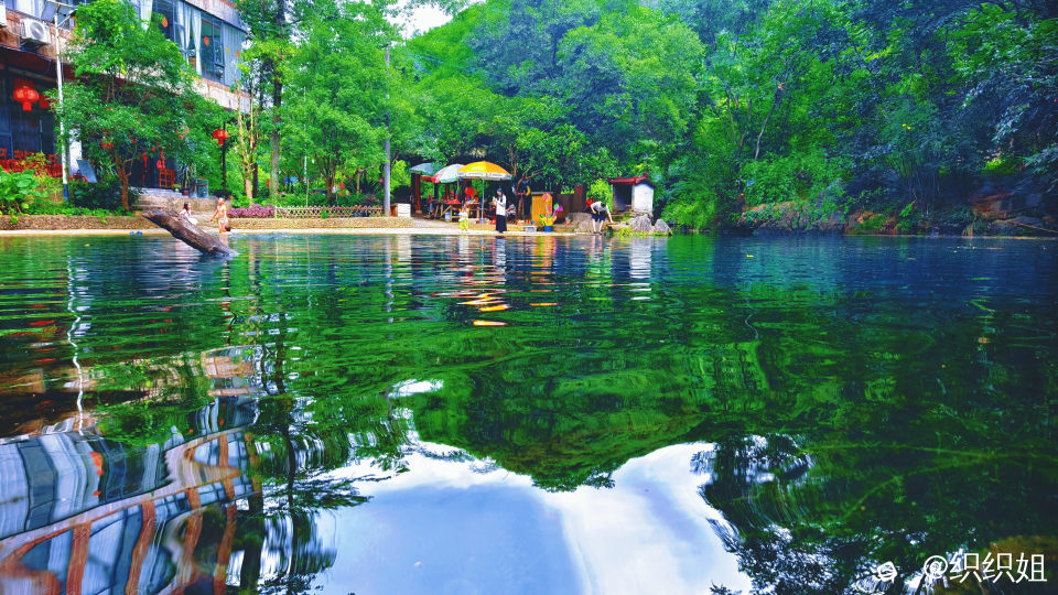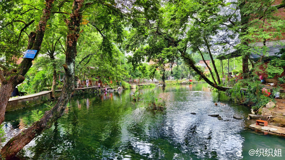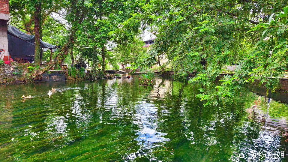 一条如翡翠般澄澈的溪流穿村而过,水中摇曳的水草清晰可见。沿着溪流漫步至深潭处,只见一汪深邃幽蓝的潭水,恰似九寨沟的“蓝眼泪”。