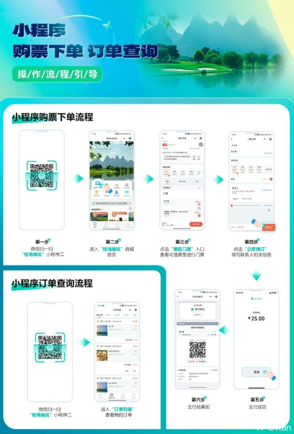 到达游客中心大厅,工作人员有条不紊地指导大家扫码预约,通过微信小程序直接下单,节省了排队的时间。
