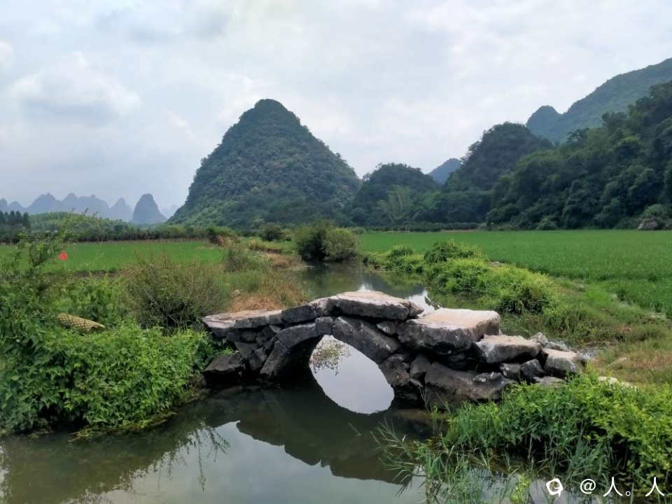 枯水季和丰水季对照一下,古桥的韵味更浓了。照片左边,远处的峰林带来通往仙境的Feel。