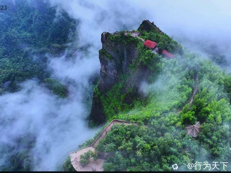 主峰八角寨海拔818米,因山顶有八个翘角而得名,远望如巨龙腾空,气势磅礴。登顶俯瞰,云海翻涌,群峰如螺,蔚为壮观。