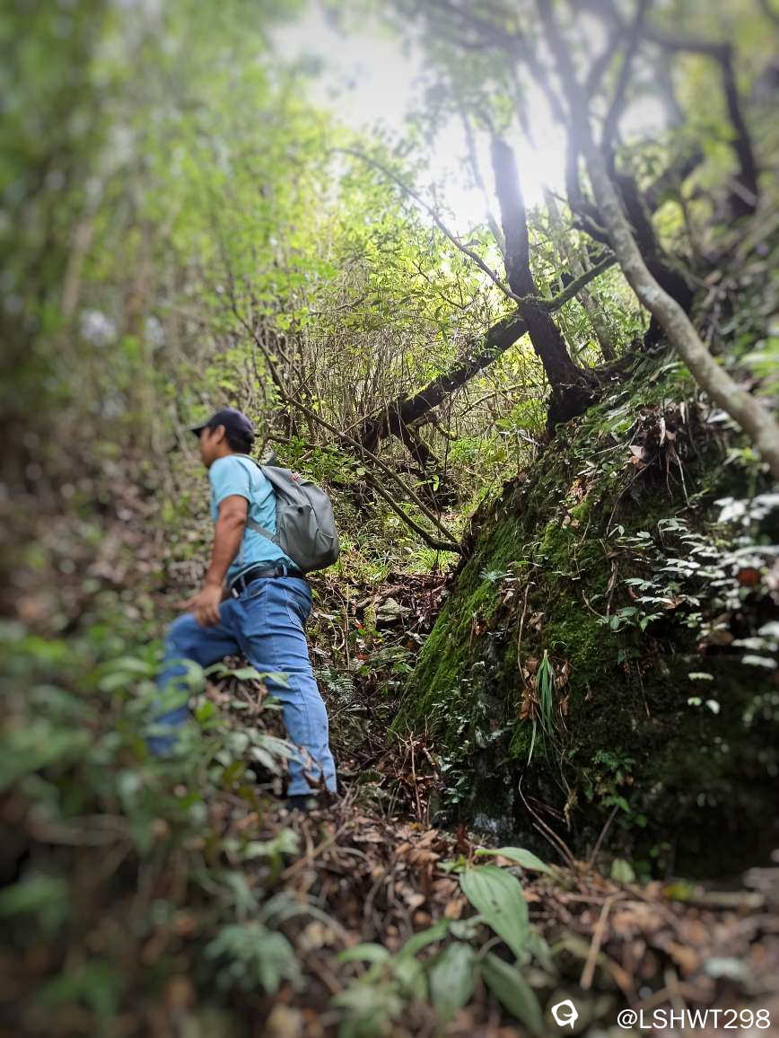 无人行走的山林,路肯定是野。竹竿开道是常态,一则打掉植物枝干上的蛛网、惊扰草林蛇类,二则还可用于支撑自身躯体,辅助借力。。。