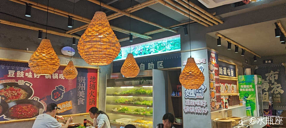 暑假贵阳的酒店贵得离谱。。。。定了花溪区长江路一带的酒店,价格能接受,住这里出行也算方便,旁边就是万科广场。晚餐在附近吃的酸汤牛肉,餐位费每人8元,蘸料、水果、甜品(银耳羹和糯米小丸子)和青菜自助。